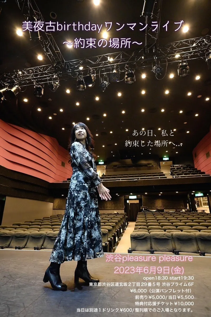 大人の恋と人生を歌うシンガーの美夜古としては、いくつになっても夢を持って挑戦しても良いんだよ。と、思うし、その想いに嘘は無いけれど、渋谷pleasure pleasureという渋谷のあのステージで歌うには今年がギリギリの年齢だと思っています。(非公開だけど!)
