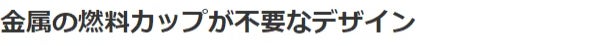 A:一般的に金属カップをはめこんで燃料を入れるタイプのものは点火の熱で割れてしまいますが、フリッカーファイヤーは特別な加工を施しており、高いところから落としたりしない限り割れません。一生お使いいただけることを想定して開発しています。