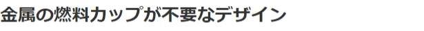 A:一般的に金属カップをはめこんで燃料を入れるタイプのものは点火の熱で割れてしまいますが、フリッカーファイヤーは特別な加工を施しており、高いところから落としたりしない限り割れません。一生お使いいただけることを想定して開発しています。