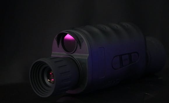 工学10倍の対物レンズを回転させることで映像の鮮明さを調節出来ます。望遠鏡のように遠くの景色もハッキリと見えます。赤外線機能が備わっているため、暗闇の中でも遠くの物を観測することが可能です。