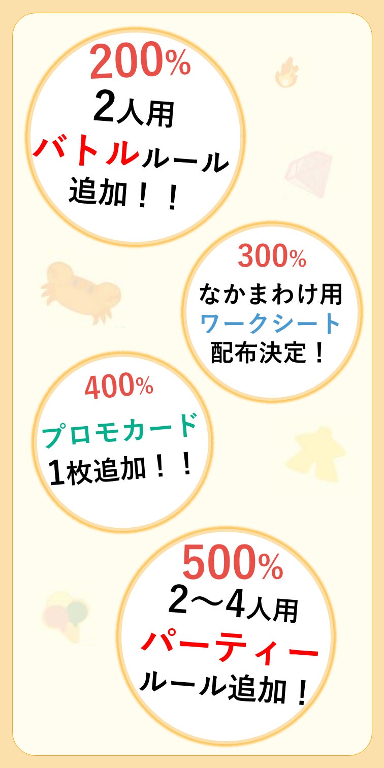 達成したゴールたちは、「しゃかしゃかみっけ」が含まれているリターンを選択されている方全員に適用されるよ!