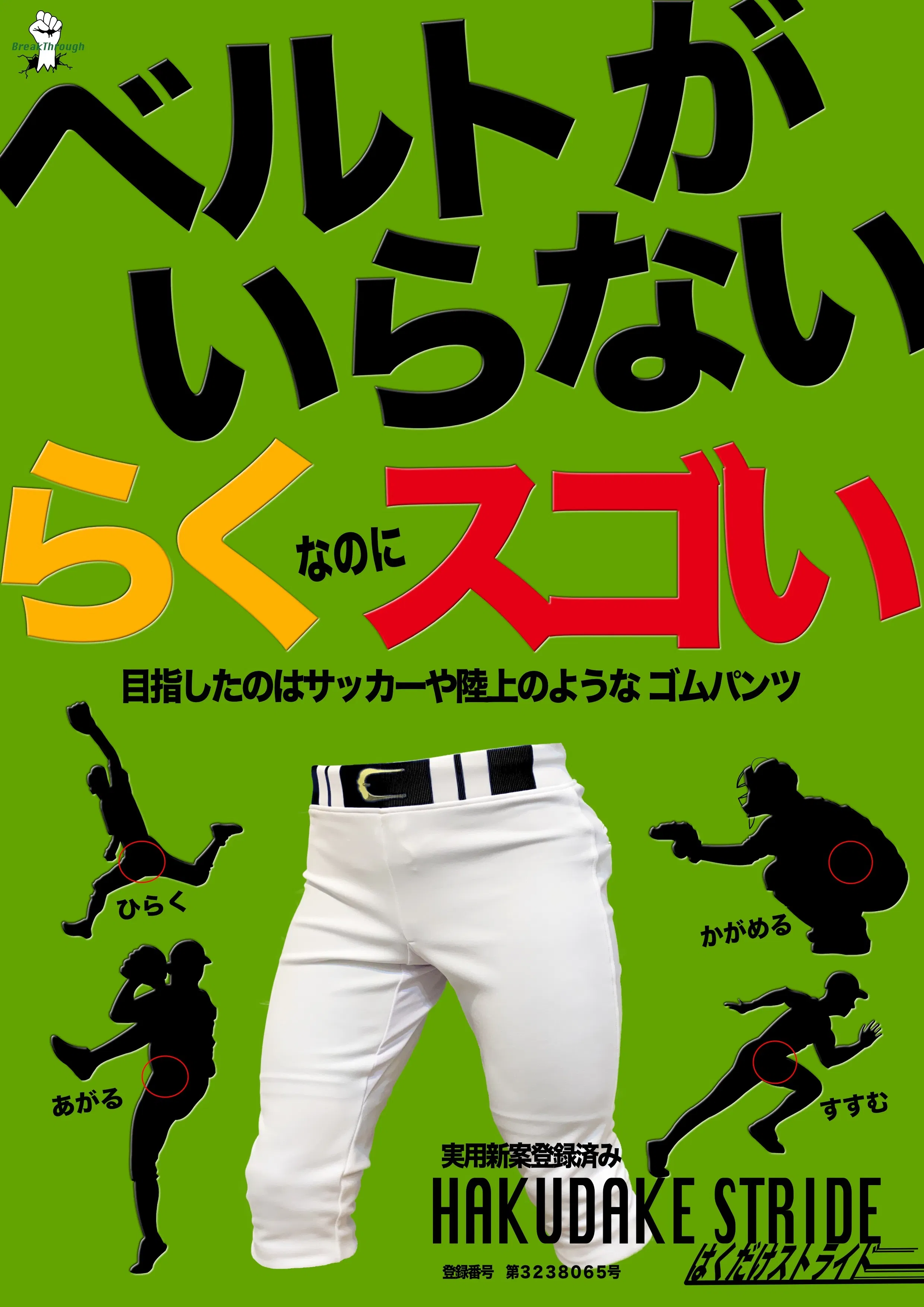ベルトのいらないユニフォーム はくだけストライド