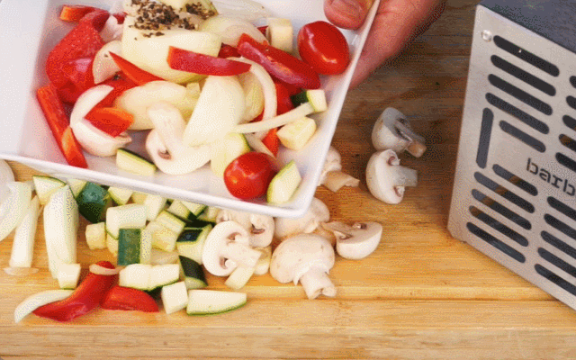 【Barbecube】でグリルすると、キューブの中で野菜から染み出た水分でスチーム調理ができるため野菜の甘味や旨味が各段にUP。