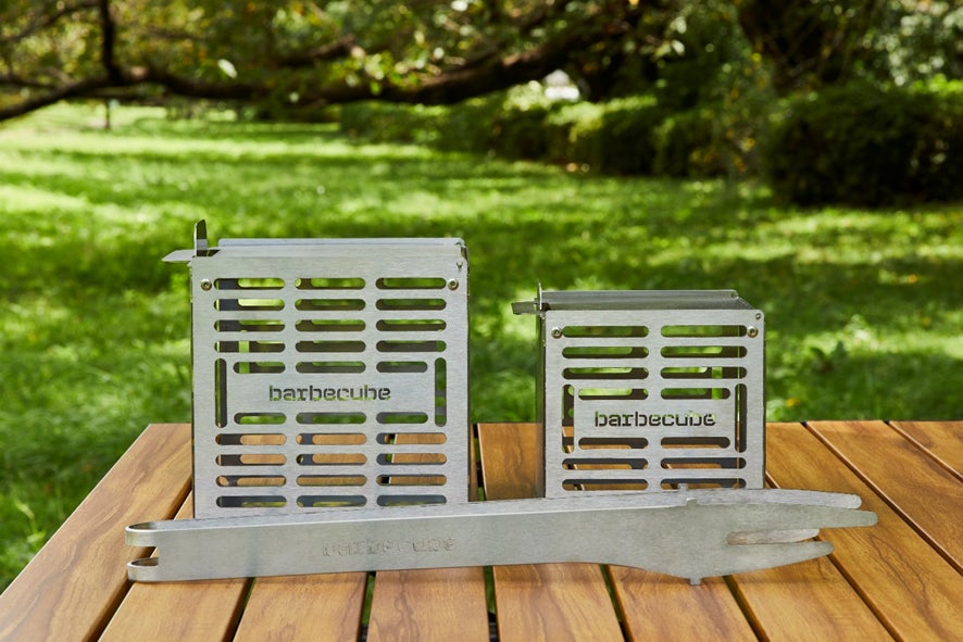 今回、レギュラーサイズの【Barbecube】と、蓋付のグリルでも使えるミニサイズの【Mini-cube】の2サイズをご用意しました。