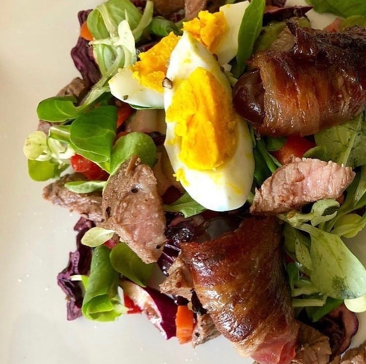 ①食材を適当な大きさにカットし、下味をつけ、オリーブオイルなどで合えます。