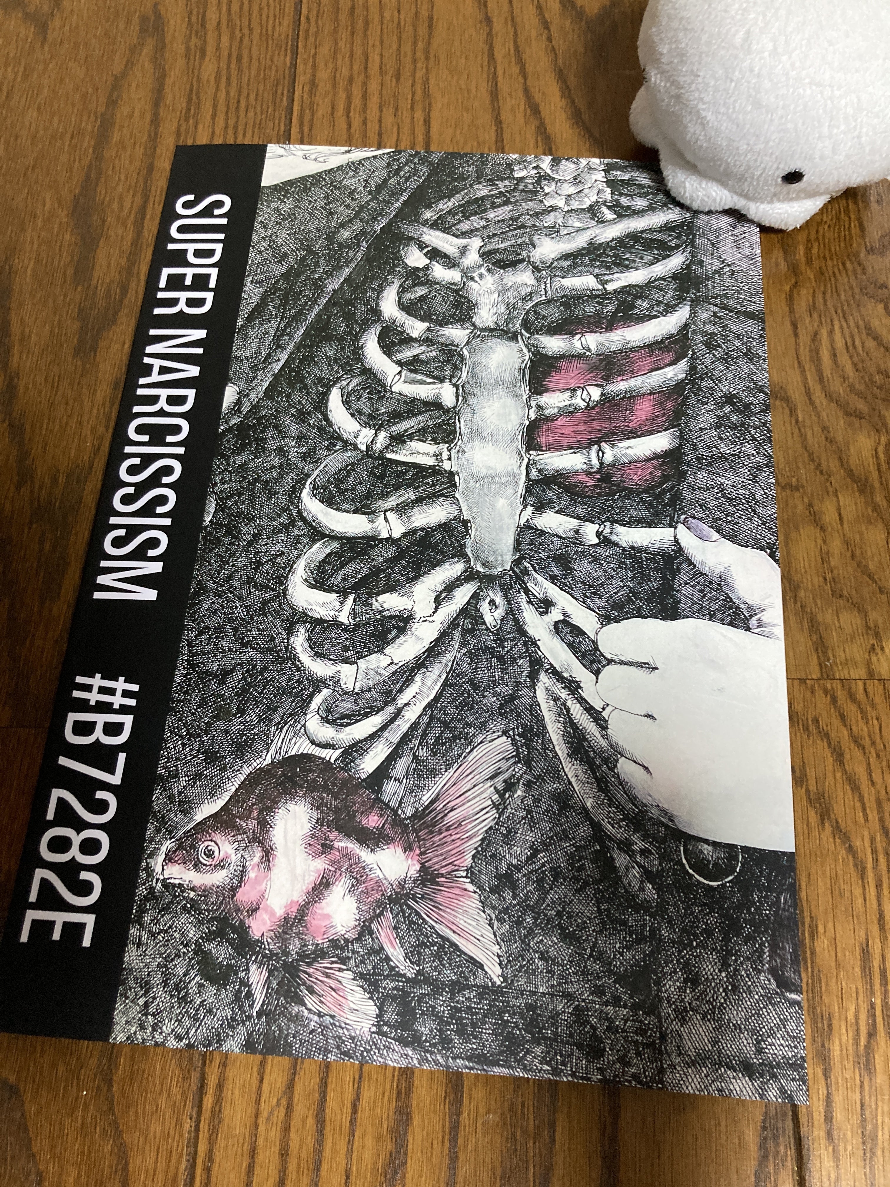 画集の「SUPER NARCISSISM #B7282E」(自主出版)を送らせていただきます。