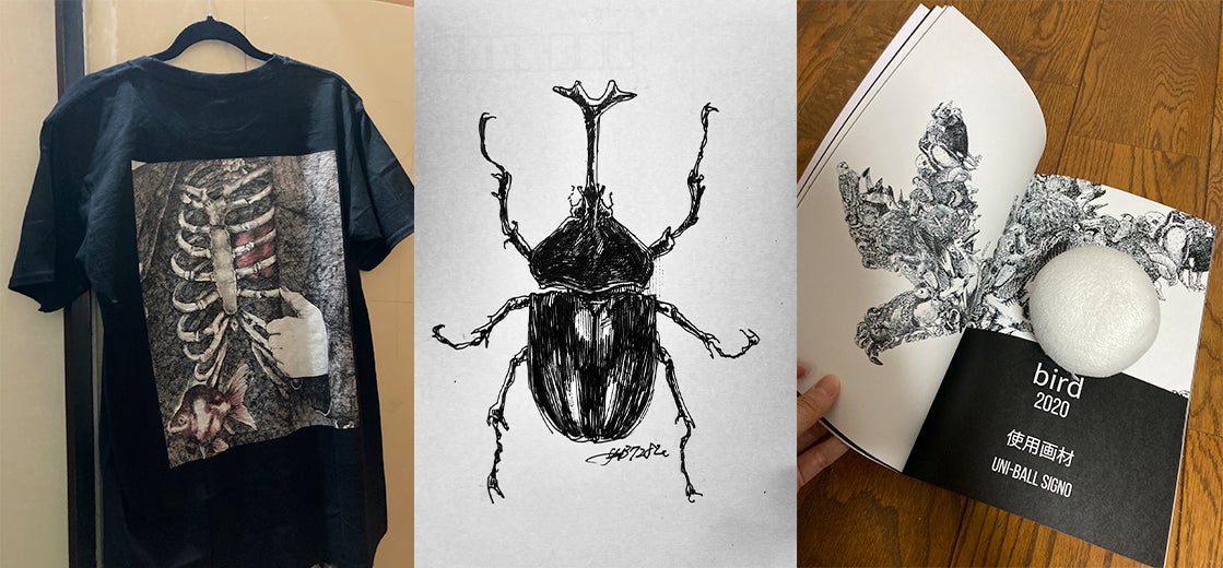 主にペン画を制作していて、動物や植物などのモチーフを好き好んで描いております。