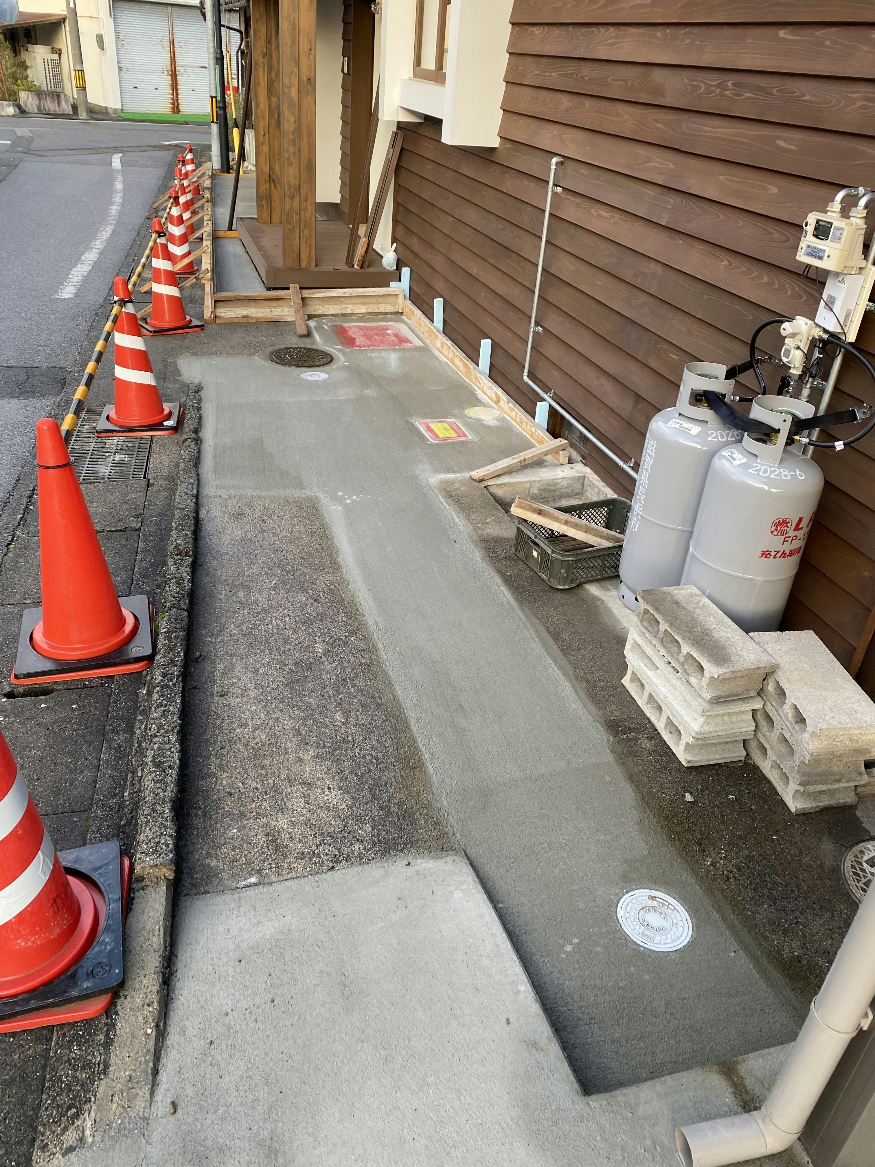 今日の工房の様子です。外構のコンクリートが固まるのを待っています。