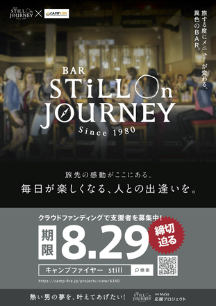 ご報告遅れましたが… 2016年10月31日に『BAR STiLL on JOURNEY』オープンしました! 本当にたくさんの方々から力を借りて無事にオープンすることができました。 オープン当日は全国から足を運んで頂き、たくさんのお祝いを頂きました。 当日の様子をご覧下さい。 これがゴールではなくスタートライン。 本当に良い店にしていけるようこれからも精進していきます。 力を貸してもらった仲間たち、支援して頂いた皆様本当にありがとうございました。 『BAR STiLL on JOURNEY』 東京都杉並区西荻北4-5-30 西荻メゾン101 営業時間18時〜5時 不定休 JR西荻窪駅駅から徒歩約6分。北口を出て左にまっすぐ、伏見通りを抜けた突き当たりにあります。 お待ちしております。