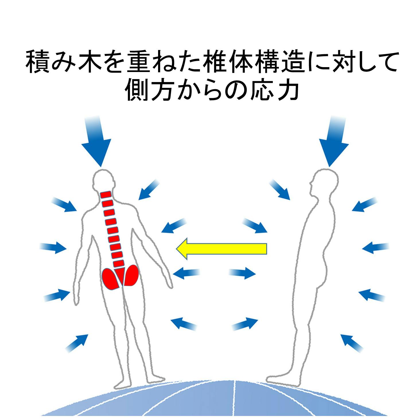 側方から応力によって、むち打ちなどを始めとする様々な身体への障害として