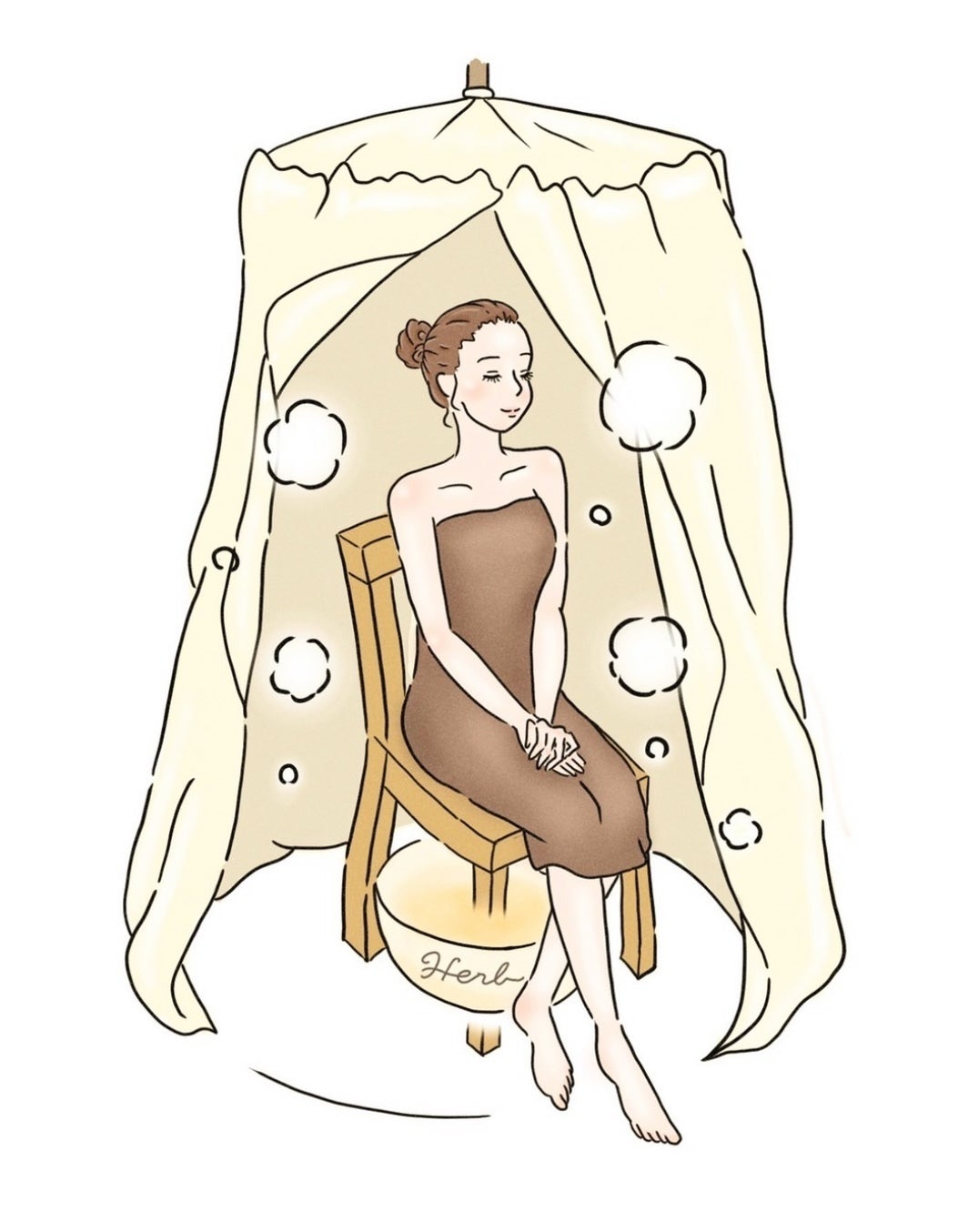タイに古くから伝わる民間療法で、元々は産後の子宮ケアとして使用されてきました。一人用の小さなテントの中で椅子に座り、蒸したハーブの薬効成分を鼻や口、皮膚から吸収する美容健康法です。