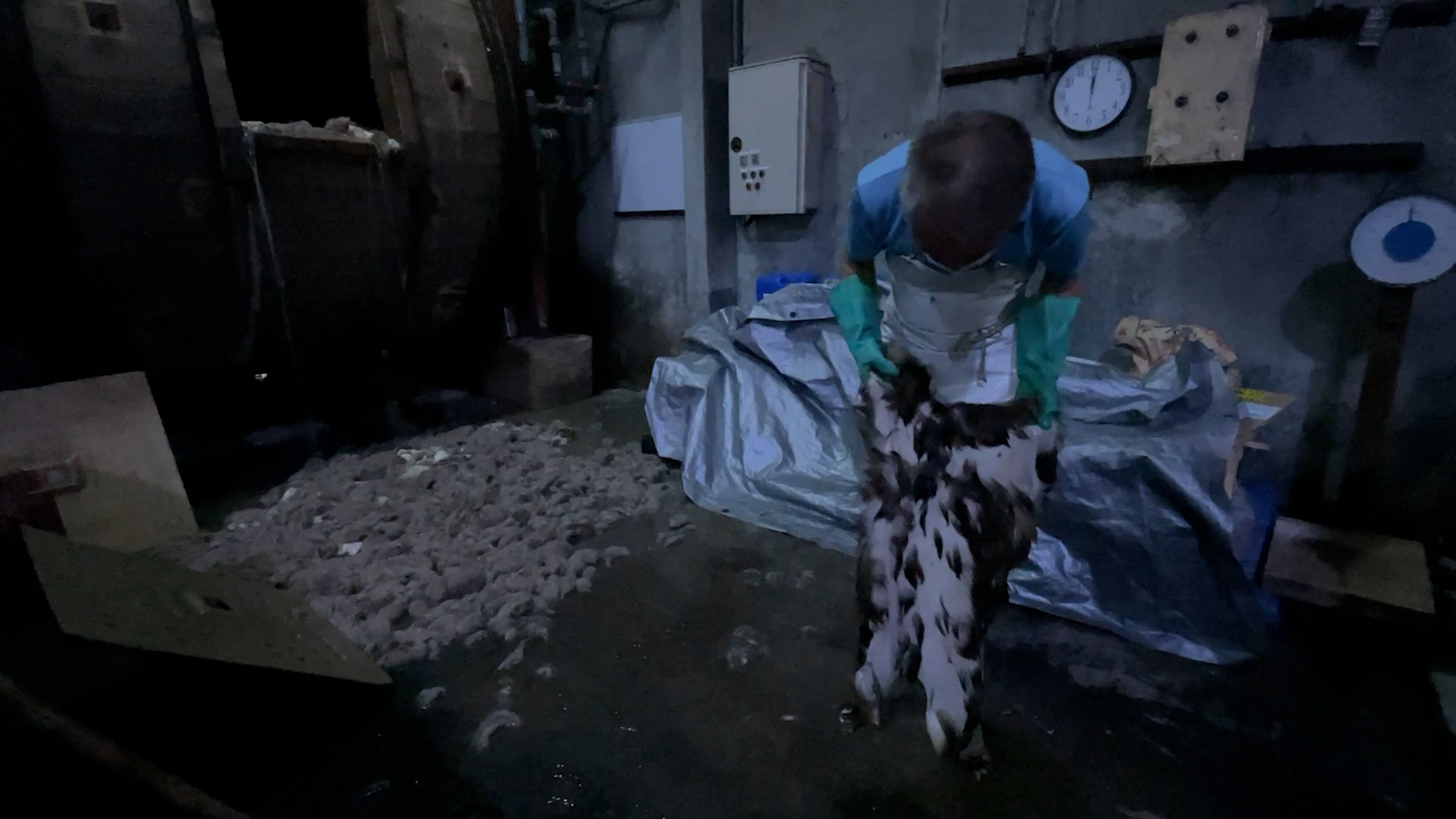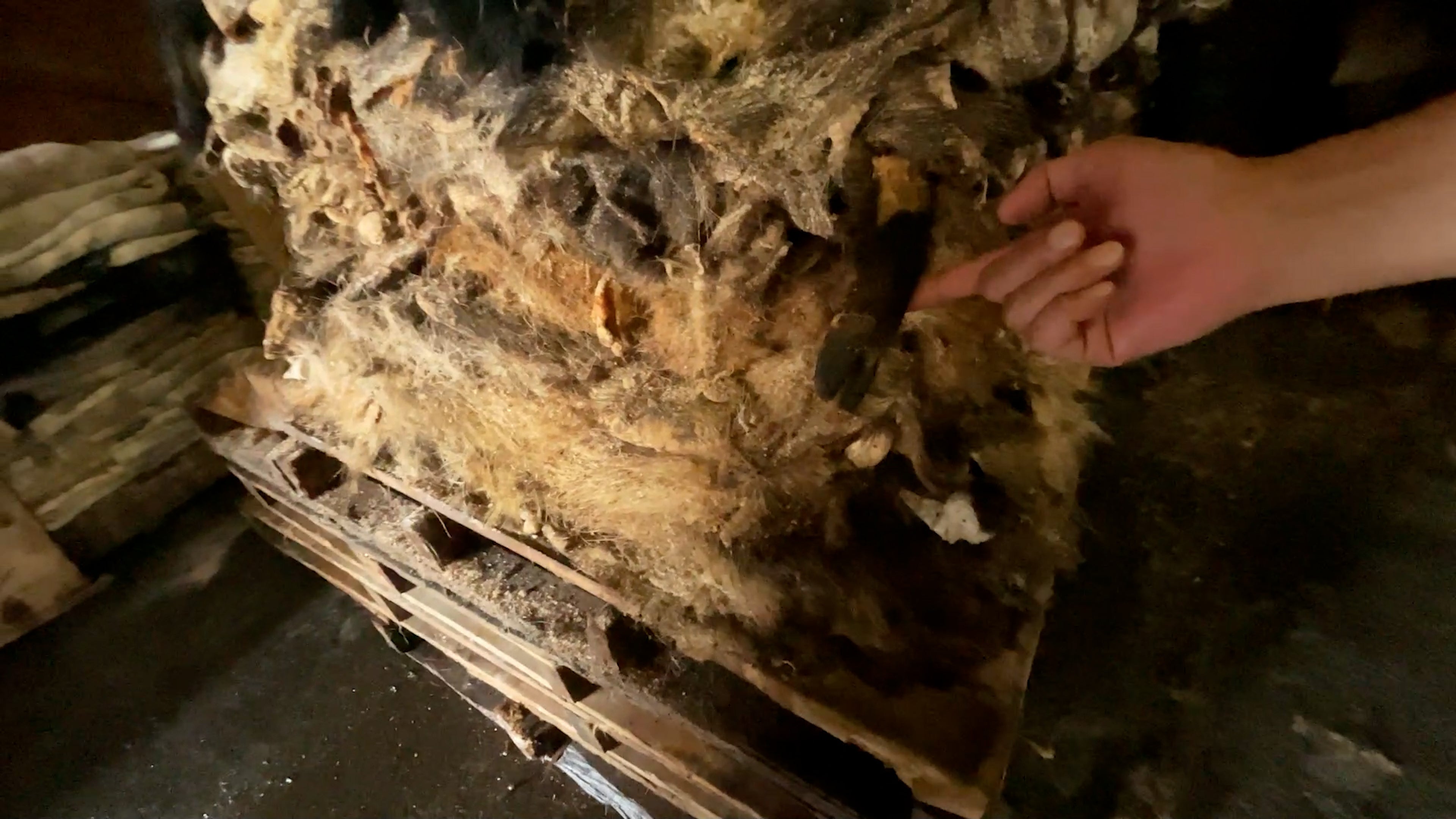 「肉は肉屋に売って皮は穴が空いて使い物にならないから山に埋めた」