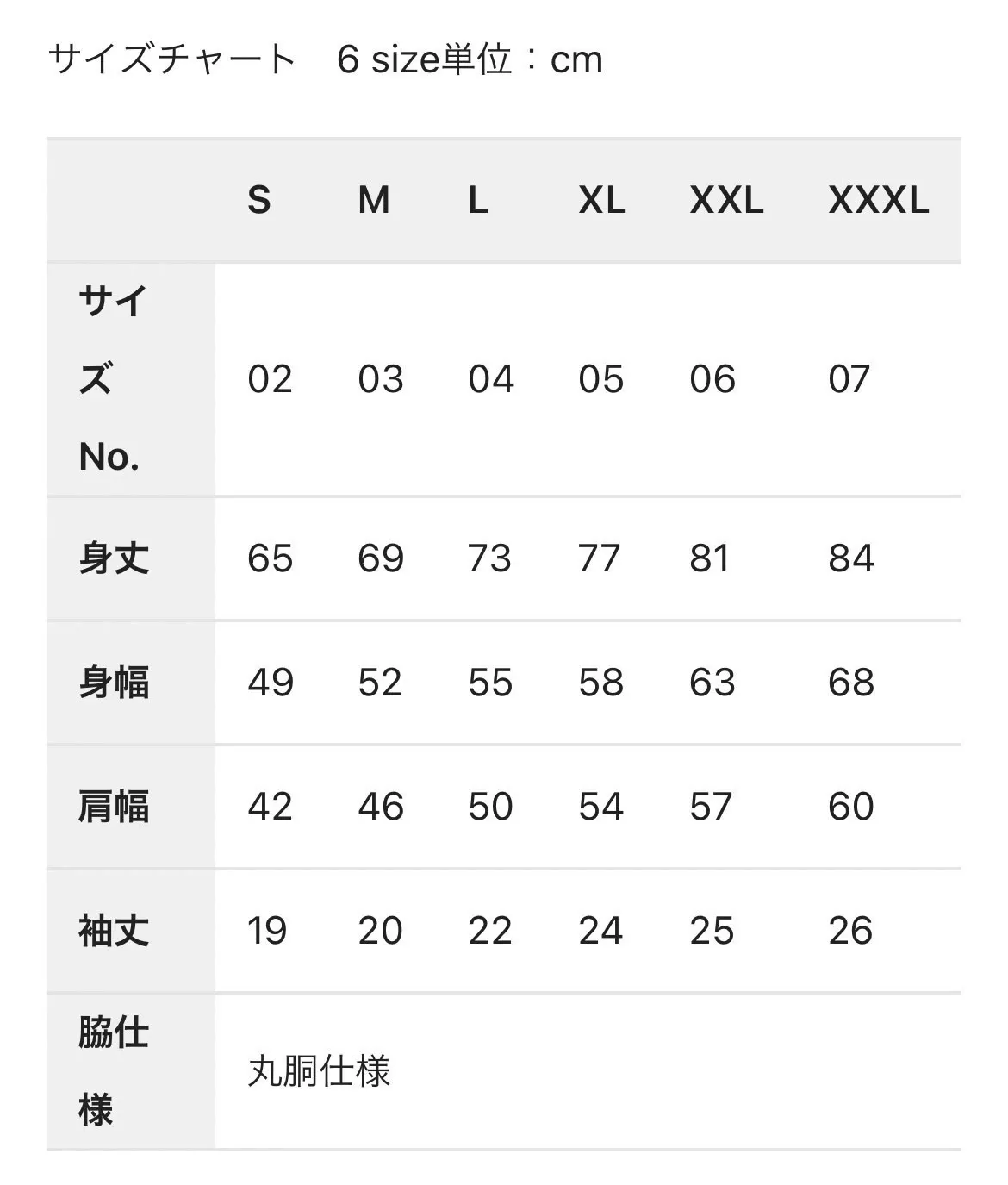 サイズは以下の表を参照ください。