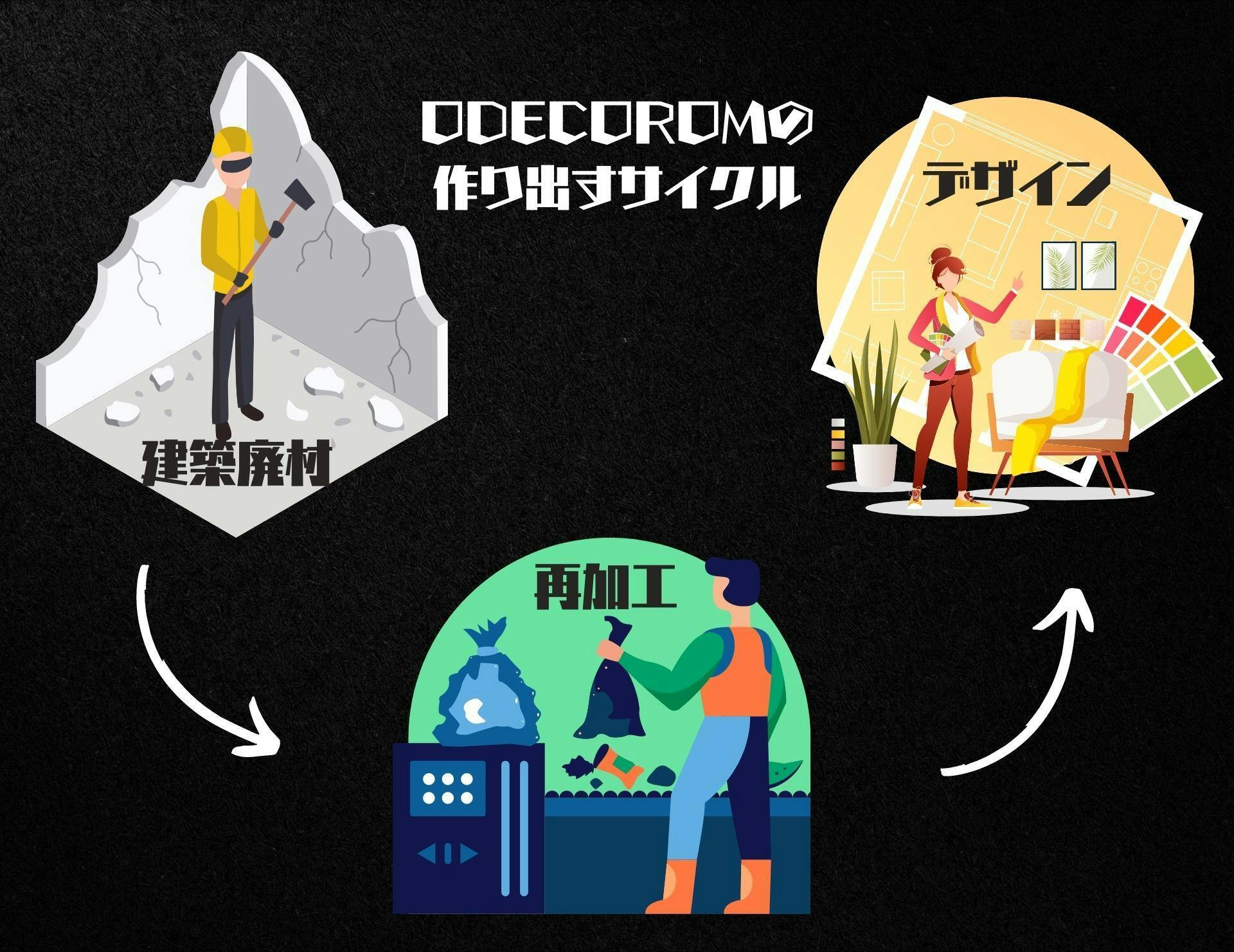 我々と皆様でODECOROMを実現することによって、廃棄されるだけだったものが捨てられずに活用されるだけでなく、魅力的な新しいカタチに生まれ変わっていきます。
