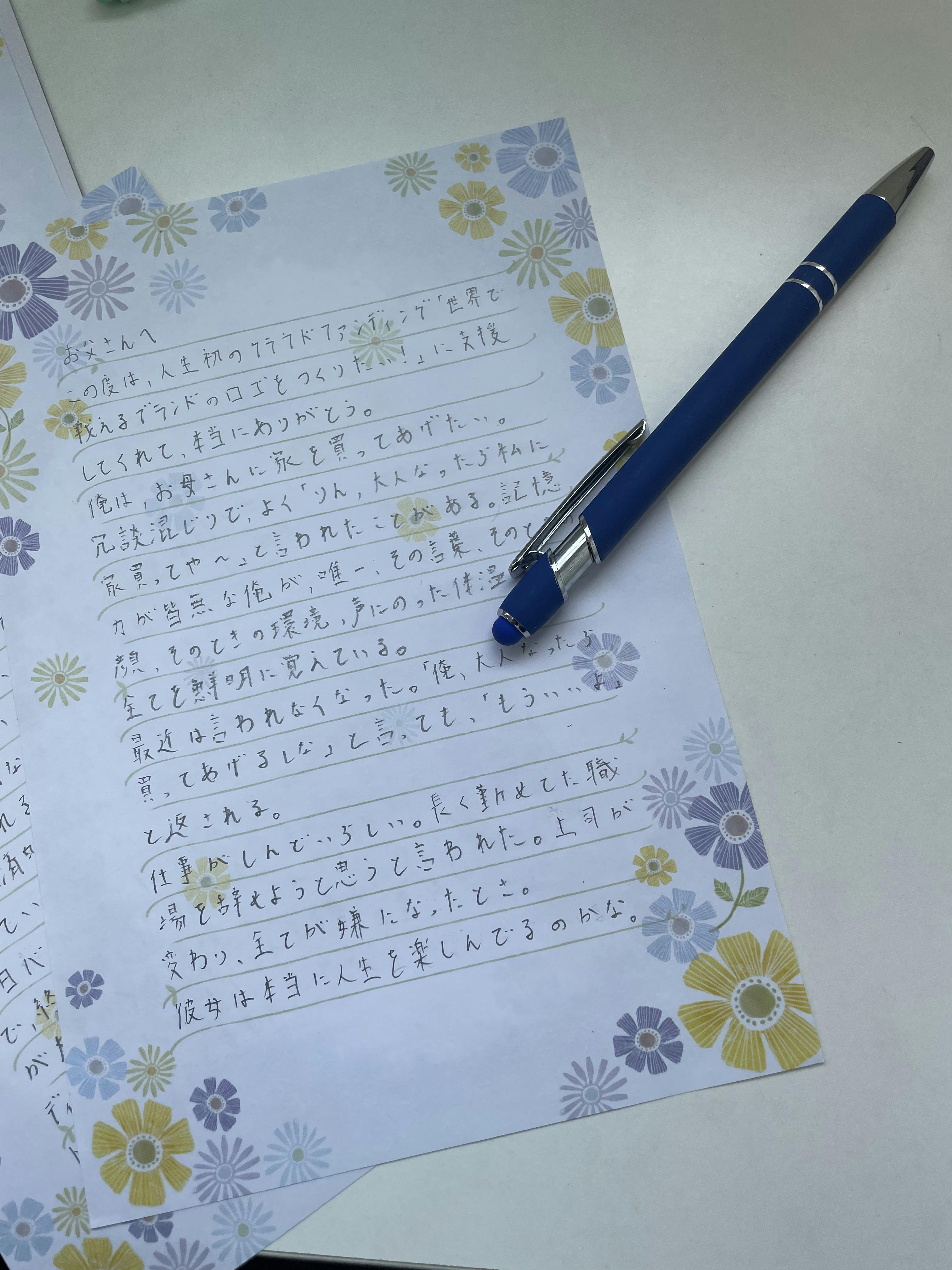 お父さんに向けた手紙は文章を飾るのをやめようと思って、今の感情・本音を素直に書きました。内容は「お母さん」が軸になっております。