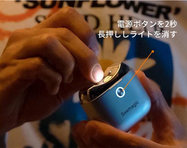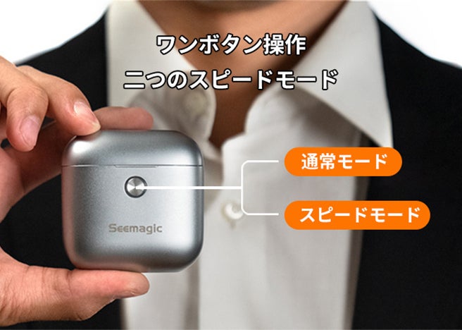 Seemagicには一つだけボタンを配置。6秒間長押しすることで電源がオンになる。また、二つのスピードモードがあり、自由に調整可能です。