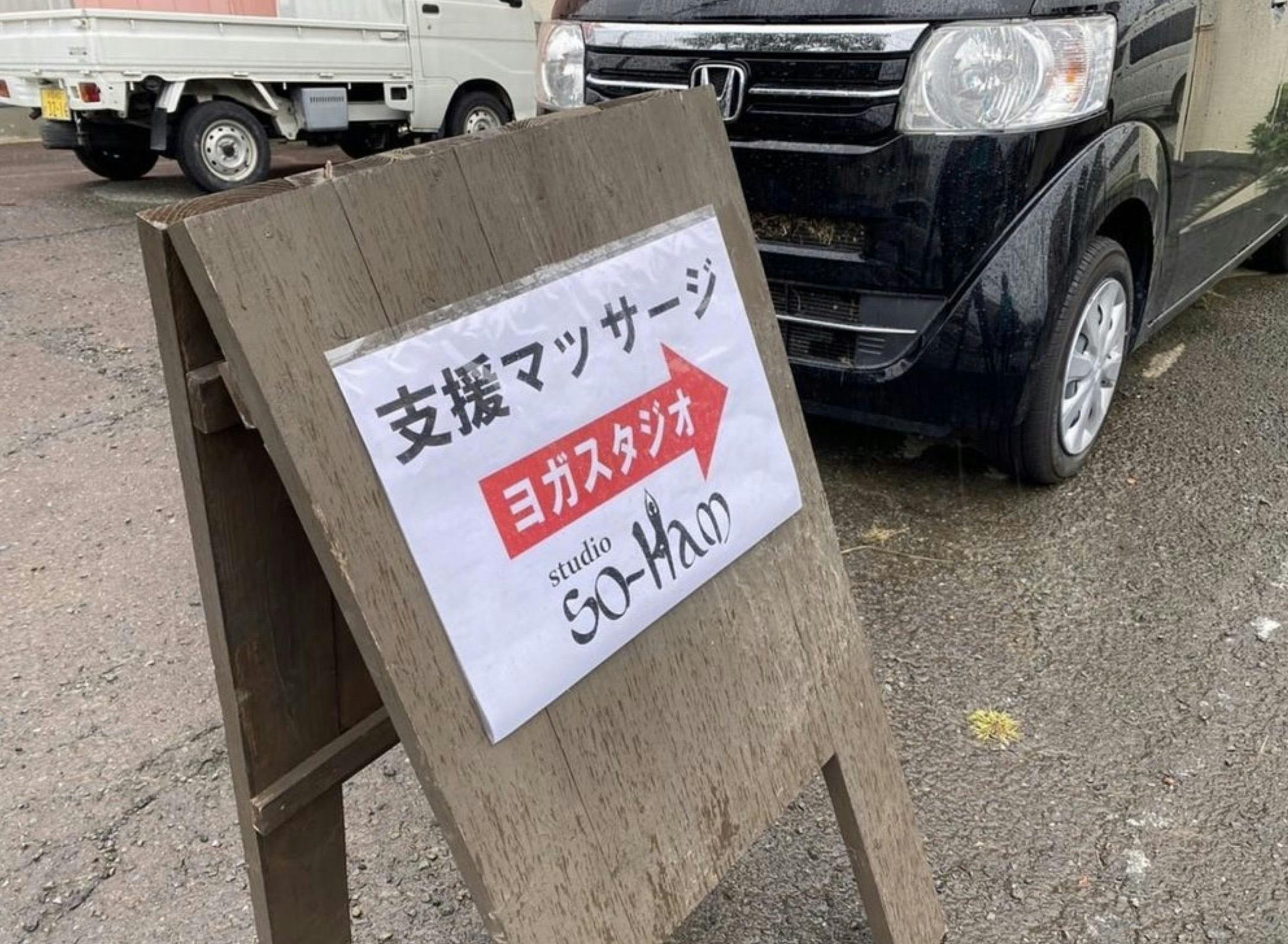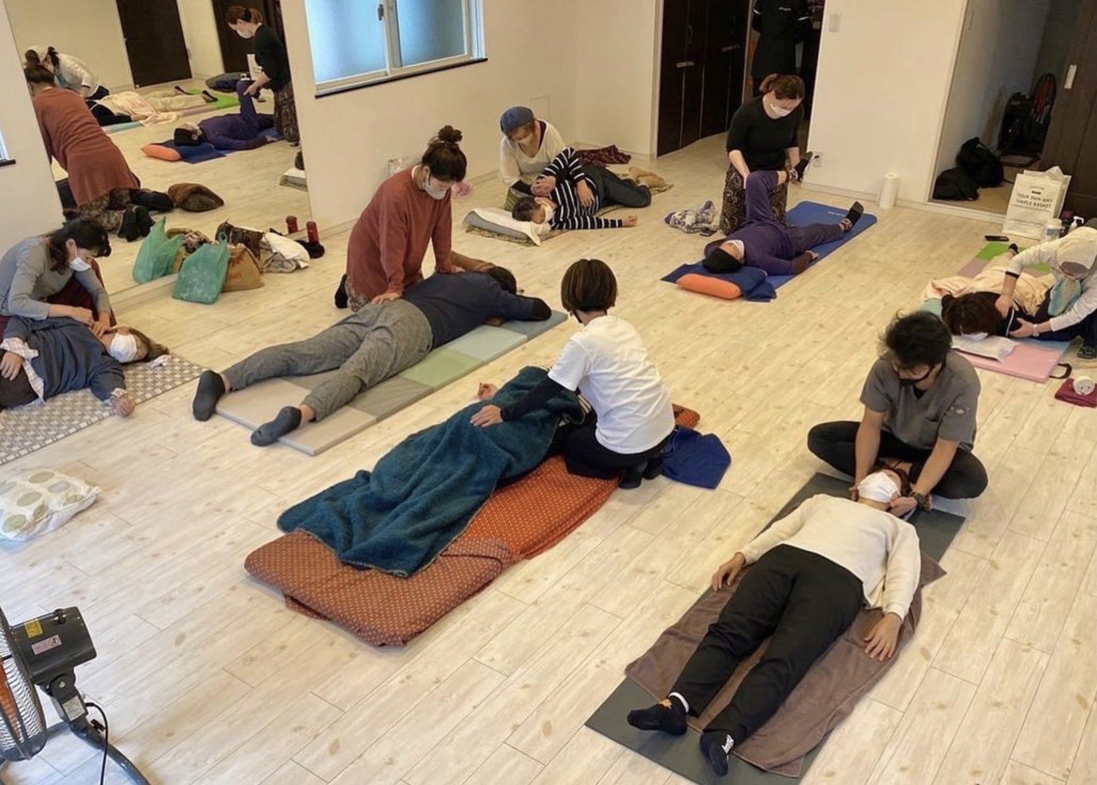 被災後3日間くらいでヨガクラスが再開できるまでに、きれいになりました。この間にも岡部の友人がスタジオ前でおにぎりの配給をしてくれたり、指定ごみ袋など物資の無料配布、お水が出ない方へ水道水の提供をしてきました。また、この地域のみなさんがどっと疲れが出ていた被災から2週間目、近所の方々の疲労を癒そうと「支援マッサージ」をこのヨガスタジオで夫の友人たちが開いてくれ、9人のマッサージ師さんたちが無料でマッサージをしてくれました。