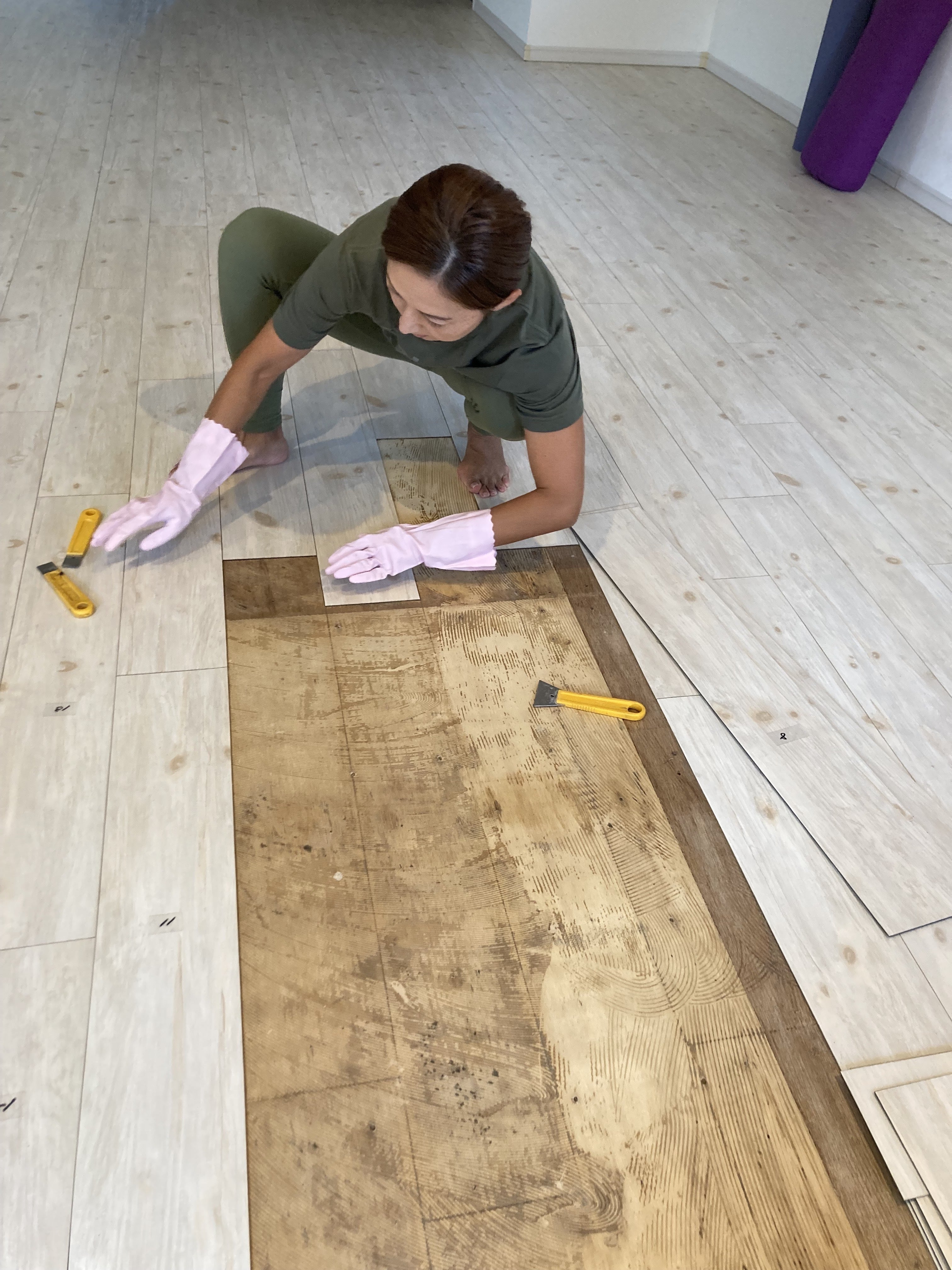 2022/11/30 15:00修繕2日目(11月25日金曜)修繕3日目(11月29日火曜)修繕工事にはアイクラフトの社長岩崎さんが一人で来てくれていますうちのように水害保険に入っていなかったところからはお金が取れないでしょうから、職人さんたちを連れてきて作業させることができないのでしょう「かわいそうだから来てやったぞ」と初日(11月22日火曜)にも言っていましたから(笑)社長自ら時々来て直していく予定なんだそうです。完全に材料費だけのボランティアですねきっとそのため、クラスが終わってから私も毎回お手伝いしています2日目は託児部屋を仕上げたり、建具を新しいものに替え、水害で膨らんで割れた床下の板を替える工事です。私はその板をインパクトで留めていく作業をさせてもらいました。3日目はその板の上に接着剤を塗り広げ、フロアタイルを元通り貼り付ける作業です。私はマスキングとコーキングのお手伝いをさせてもらいました。慣れない作業ばかりで、夜にはへとへとですが、自分でも直していると気分がすっきりします「持ち方が違うの!」とか「早くやれよ!」とか「丁寧じゃねーんだよー!」とか怒られながらも楽しく作業しています「次、来たら終わりにするぞ!」とのことですおかげさまで12月中には修繕工事完了します もっと見る