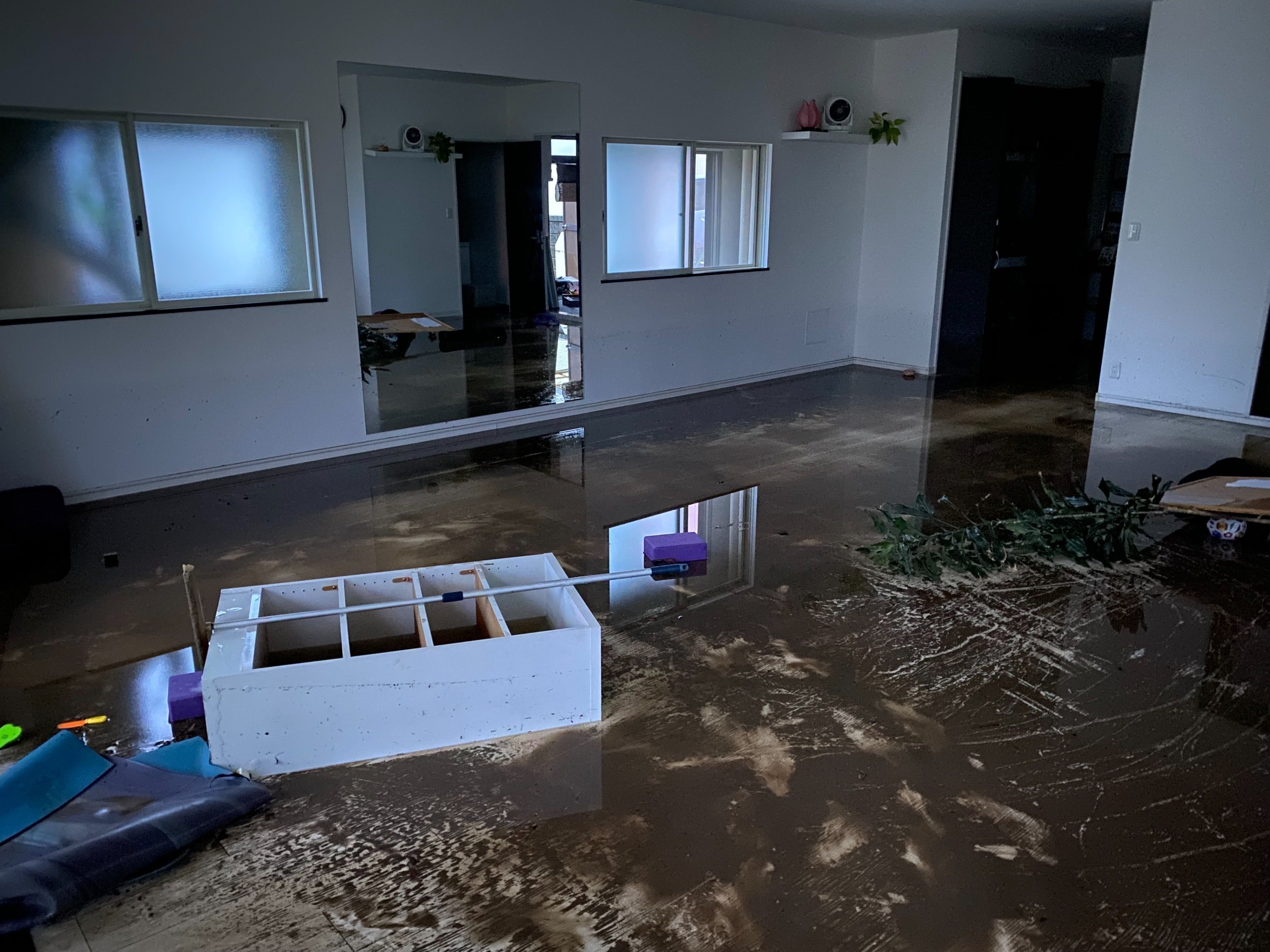 今年の9月23日24日の台風15号により床上55センチの被害に愕然としています。メンバーの方がすぐに駆け付けてくれて片付け、掃除などをお手伝いいただきました。心から感謝申し上げます。一ヶ月間毎日片づけ、掃除をしていますので、ぱっと見はきれいですが、匂いがまだとれませんし、今後、壊れた扉、変形した床などは大きなリフォームが必要になります。自分でできるところは自分でやろうと、床材をはがしたりしています。