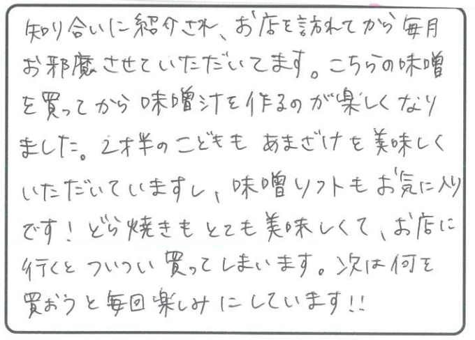 そんなにご迷惑をお掛けしてるのにもかかわらず、ほとんどのお客様は苦情をおっしゃらないんです。なんなら「峰村さんのお味噌おいしかったよ」「また買いに来るね」なんて温かい言葉までかけてくださることの方が圧倒的に多かったりします。