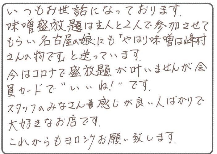 そんなにご迷惑をお掛けしてるのにもかかわらず、ほとんどのお客様は苦情をおっしゃらないんです。なんなら「峰村さんのお味噌おいしかったよ」「また買いに来るね」なんて温かい言葉までかけてくださることの方が圧倒的に多かったりします。