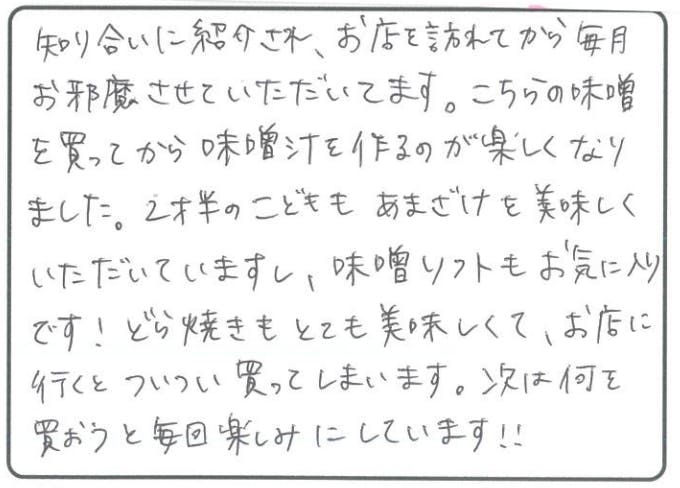 コロナ渦でも助けられた上に、このような状況でもそれほど温かい目でごひいきくださるお客様のために、次は私たちが恩返しをする番!より快適にお買い物ができる直売店にバージョンアップすることで、今までのお客様そして未来のお客様に味噌屋でのお買い物を楽しんでもらいたいです。