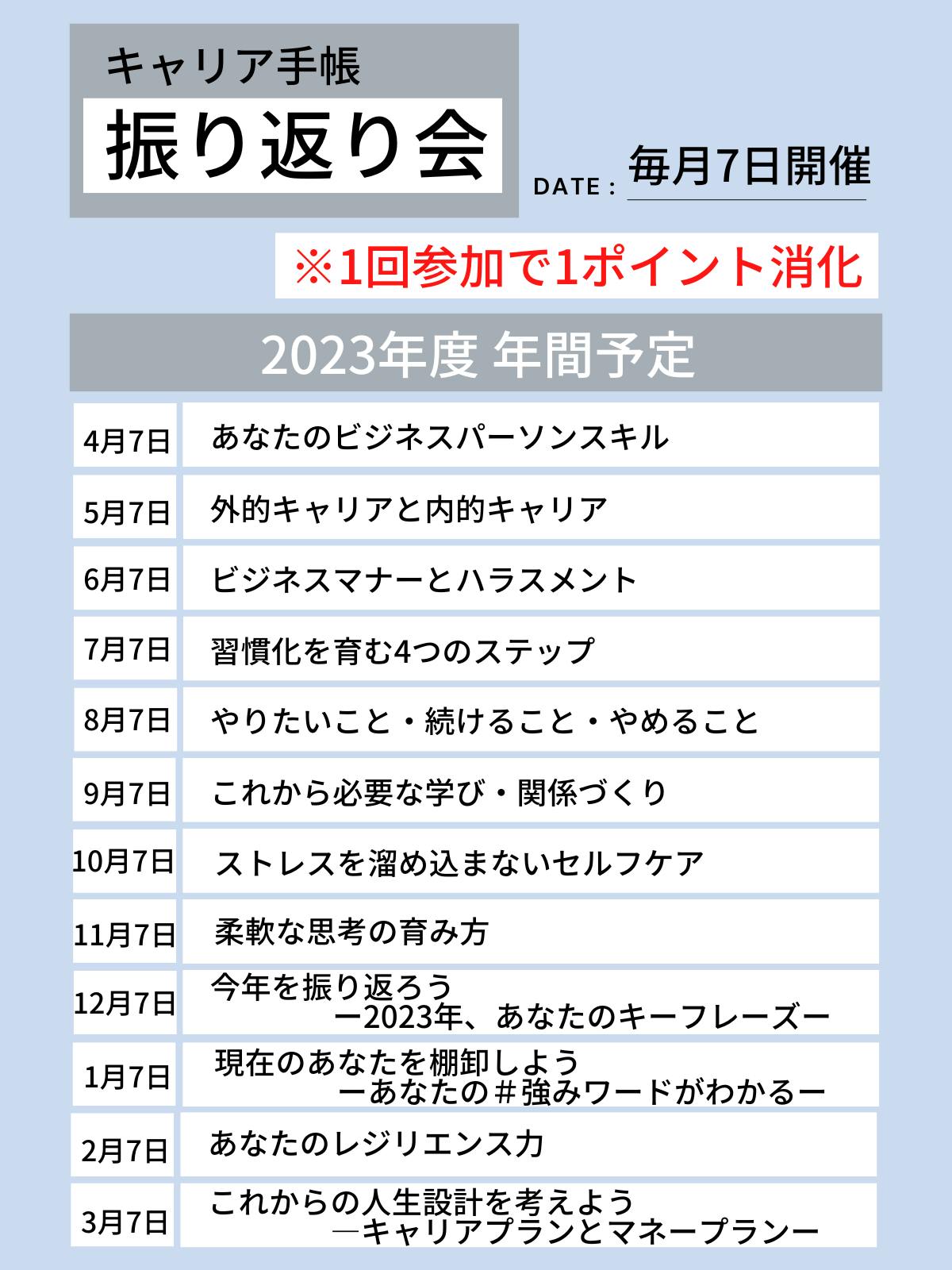 4月始まり版のキャリア手帳振り返り会のテーマは下記の通りです。