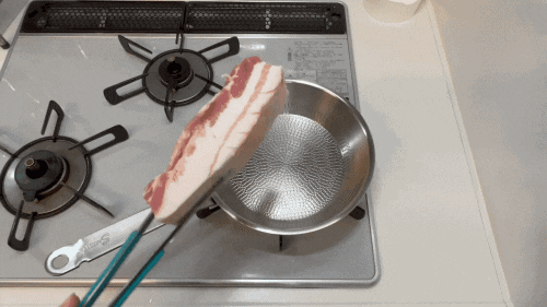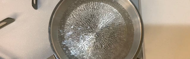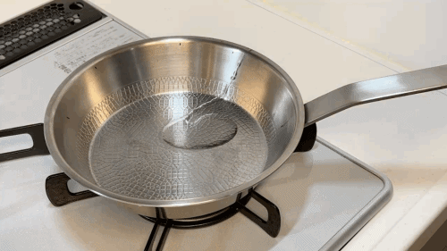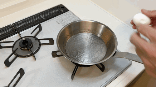 2.スプーンで水を落としてみてフライパンの上で踊り出せば調理開始