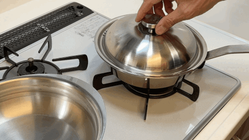 3.ステンレスの保温性を活かし余熱を使う(中火→弱火、又は火を落とす)