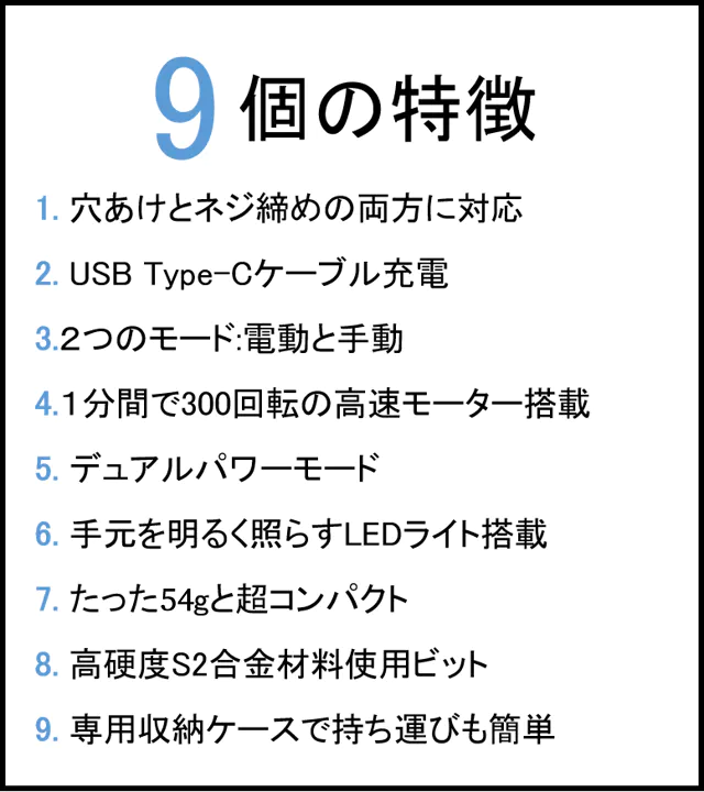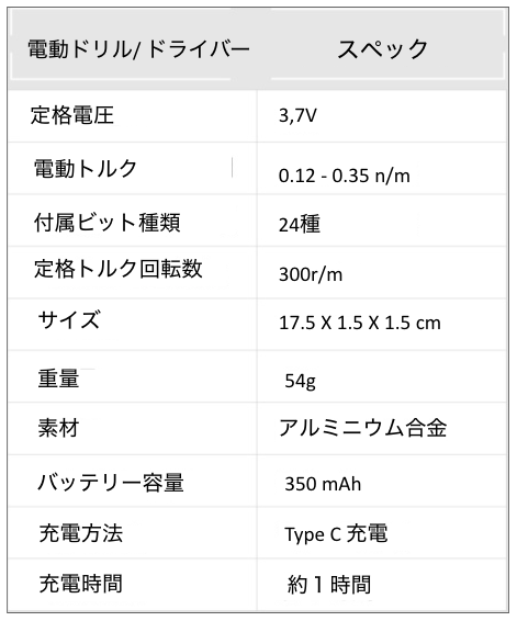 ドライバー本体の重さは約卵1個分のたった54g。