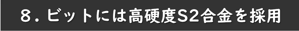 付属する24種のビット全てに高硬度S2合金を使用!丈夫で耐久性に優れています!