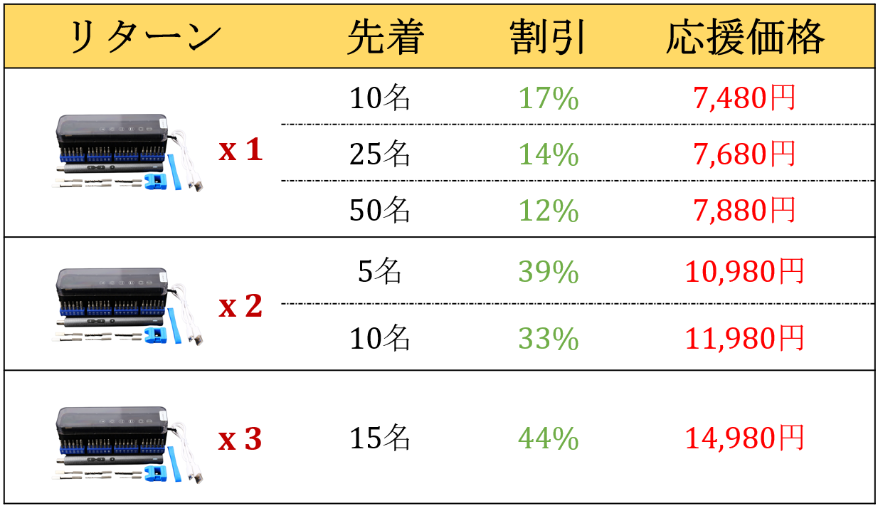 ※本文中に記載させていただいたスケジュールは、あくまでプロジェクト公開時点の予定です。クラウドファンディングを経ての輸入販売のため、配送遅延のおそれがございます。