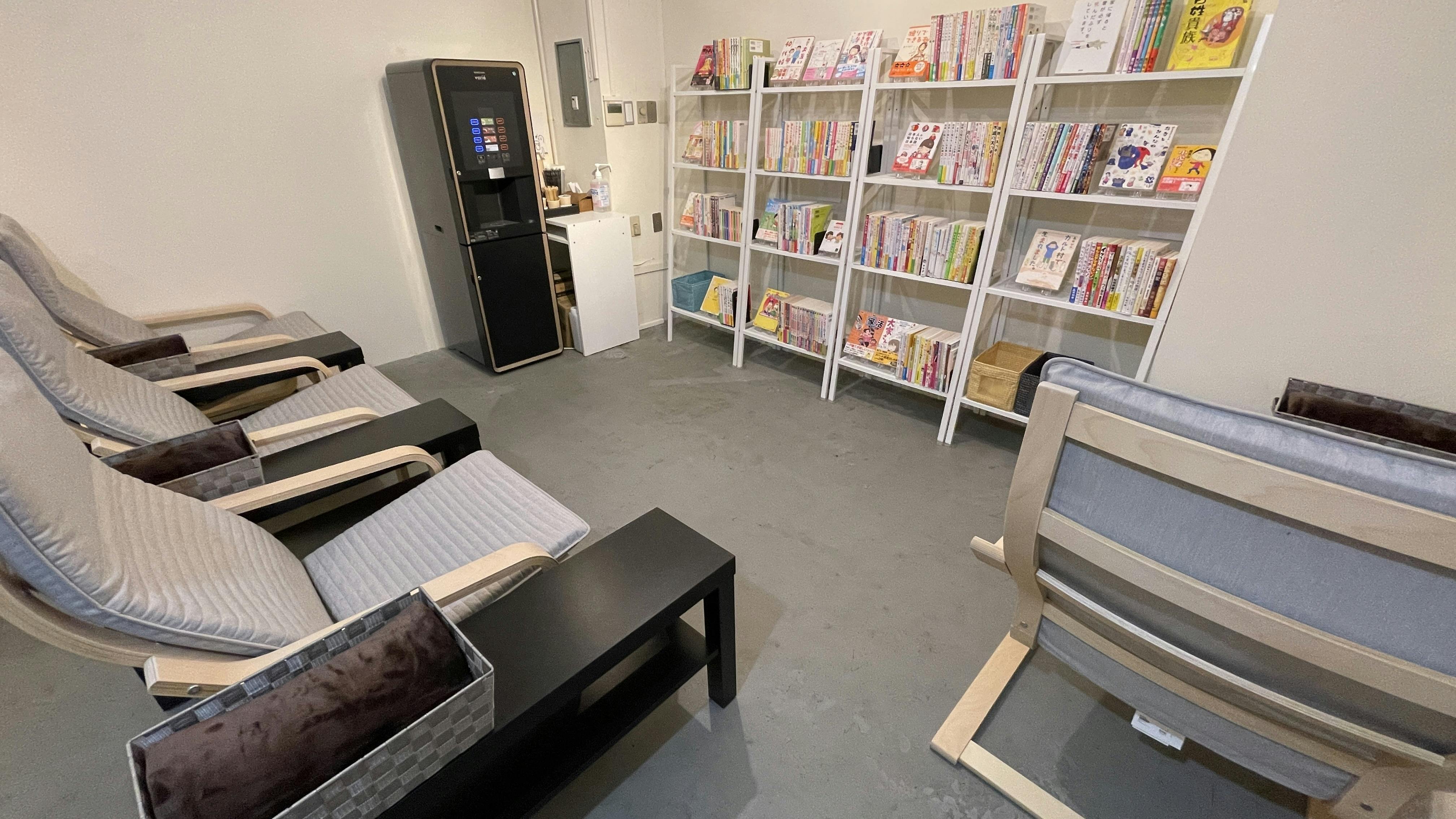BOOKラウンジはリラックスチェアに座りながらコーヒーと共に店内のコミックエッセイが自由に読めるんです。