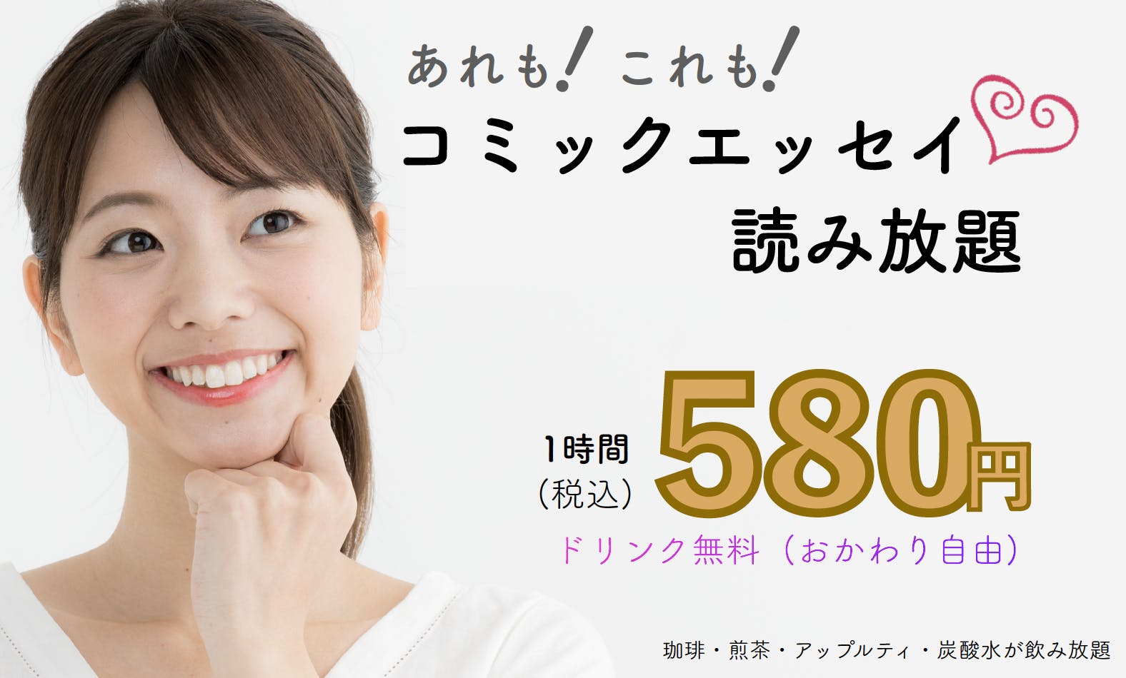 まずはゆったりお茶を飲みながらコミックエッセイを自由に楽しんで、好きな本が見つかったら購入する。