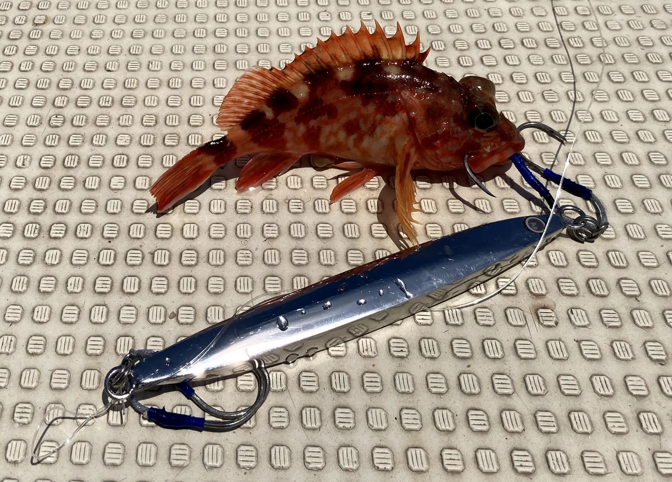 材質の違うのメタルジグより低比重のため引き感も軽く、楽にジャークさせることが可能。