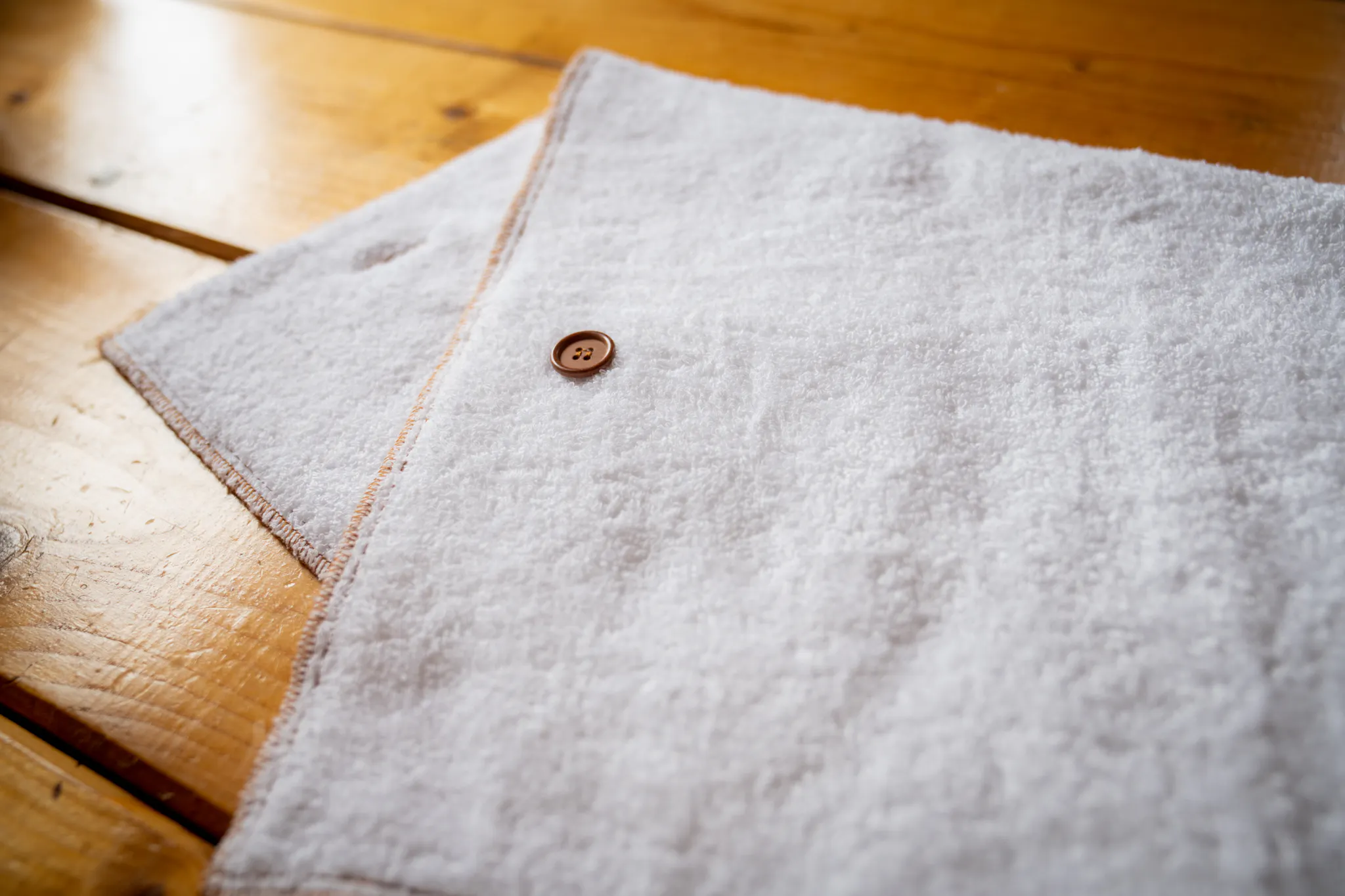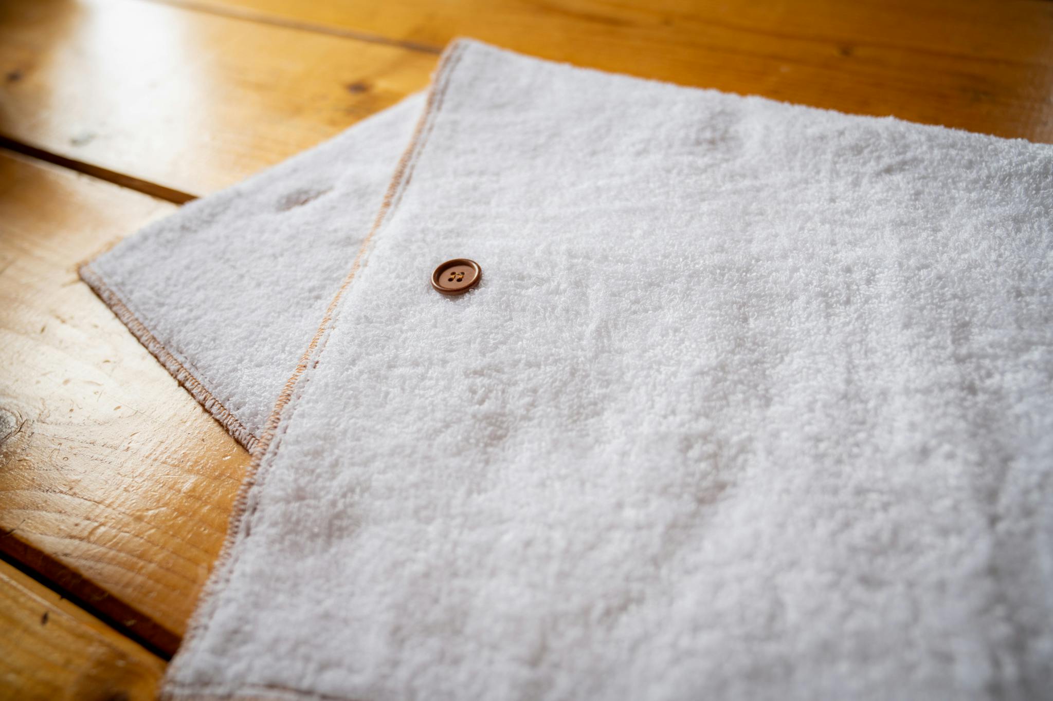 最終的な仕様を決めるまでにタオルのサイズやボタンの位置などを変えながら試作品をいくつも作りながらあれこれと試し、「これぞ!」という仕様を選びました!