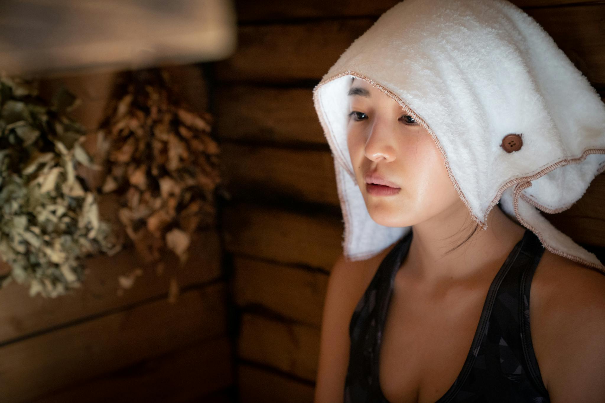 しかしながらメディテーションサウナがあちこちにあるわけではありませんし、普通のサウナだと明るくて集中できないことも多いので「今日は自分に向き合うぞ~」と思った時にはこのタオルを持ち込み、目まで覆うスタイルで入ることで周囲の環境に左右されづらくなります!