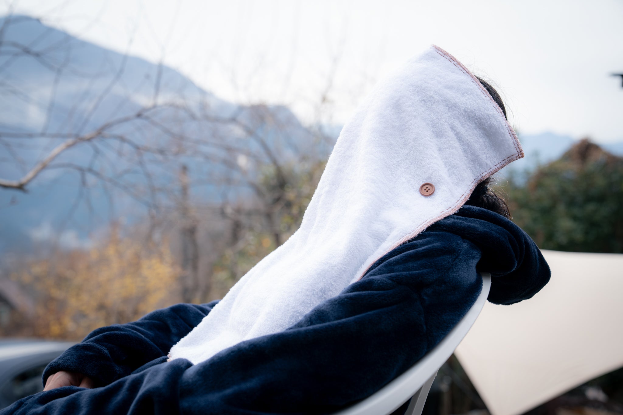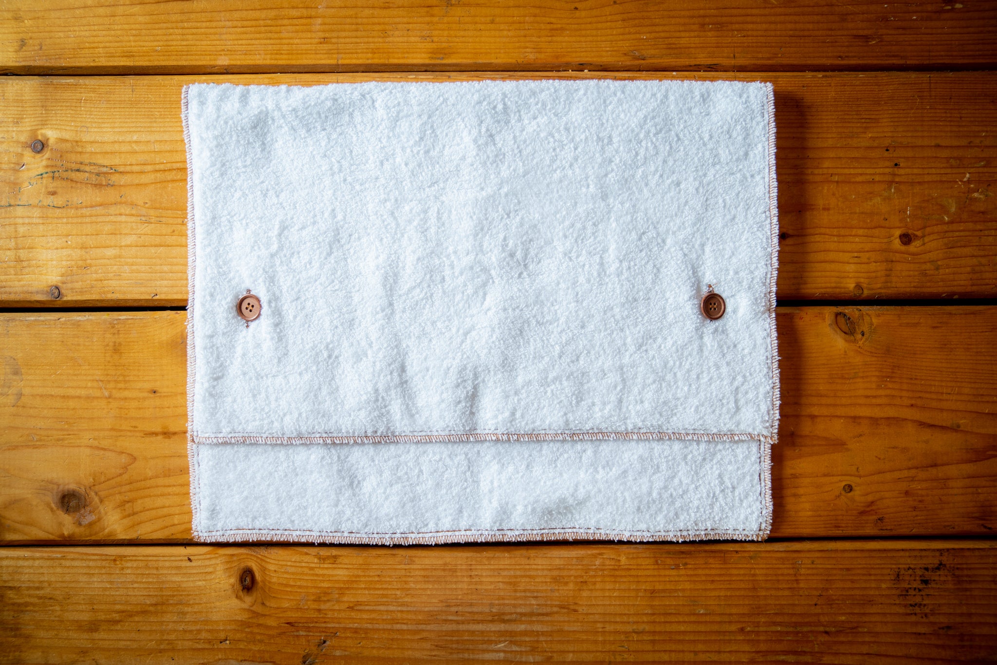 ボタンを外せば普通のタオルとして使えますので、体を洗ったり拭いたり、ととのう時に顔にかぶせたりする事も出来ますし、洗濯機で丸洗いしてもOK!