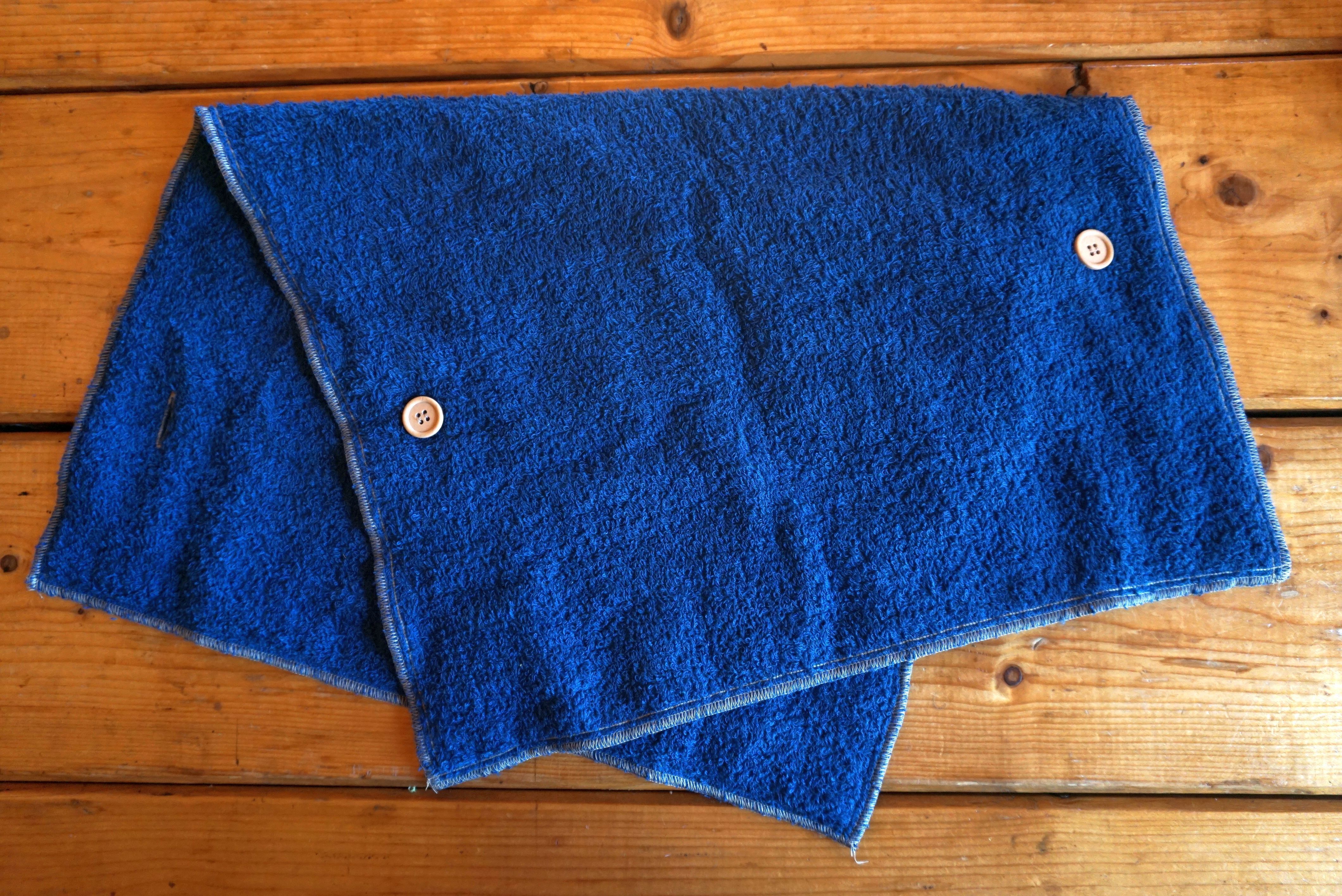 最終的な仕様を決めるまでにタオルのサイズやボタンの位置などを変えながら試作品をいくつも作りながらあれこれと試し、「これぞ!」という仕様を選びました!