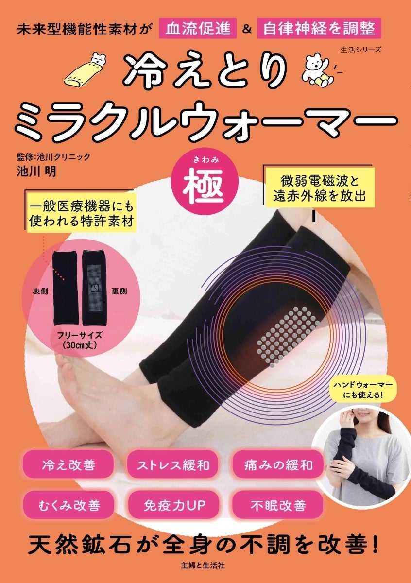 血流改善を狙った製品は、主婦と生活社による付録付きムック「”極”ミラクル」シリーズで、レッグウォーマーや靴下などが数万部のヒット商品となっているほか、はらまきなどがあります。