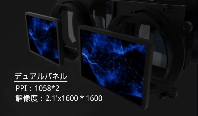 PPI 1058のパネル2枚を搭載し、1600 x 1600の高解像度で立体感の域を超えて、本物の映画館で観ているような体験を実現し、これまでになかった視覚体験を提供してくれます。