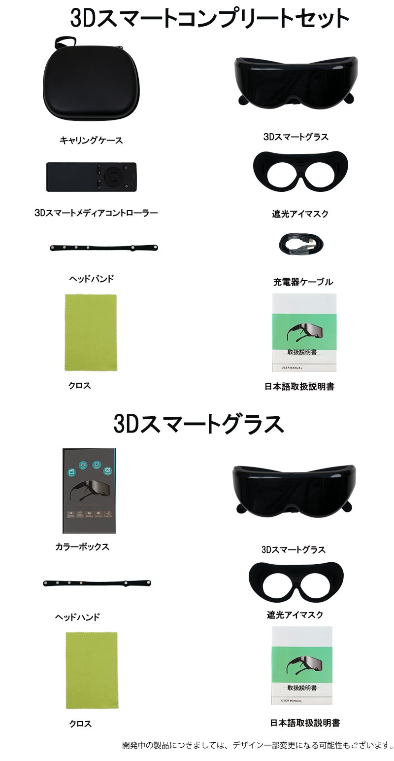 ご注意:グラス単体ご購入の場合は、スクリーンのサイズが調整できないため、ご視聴の動画により画面の四隅が多少欠ける可能性もございます。