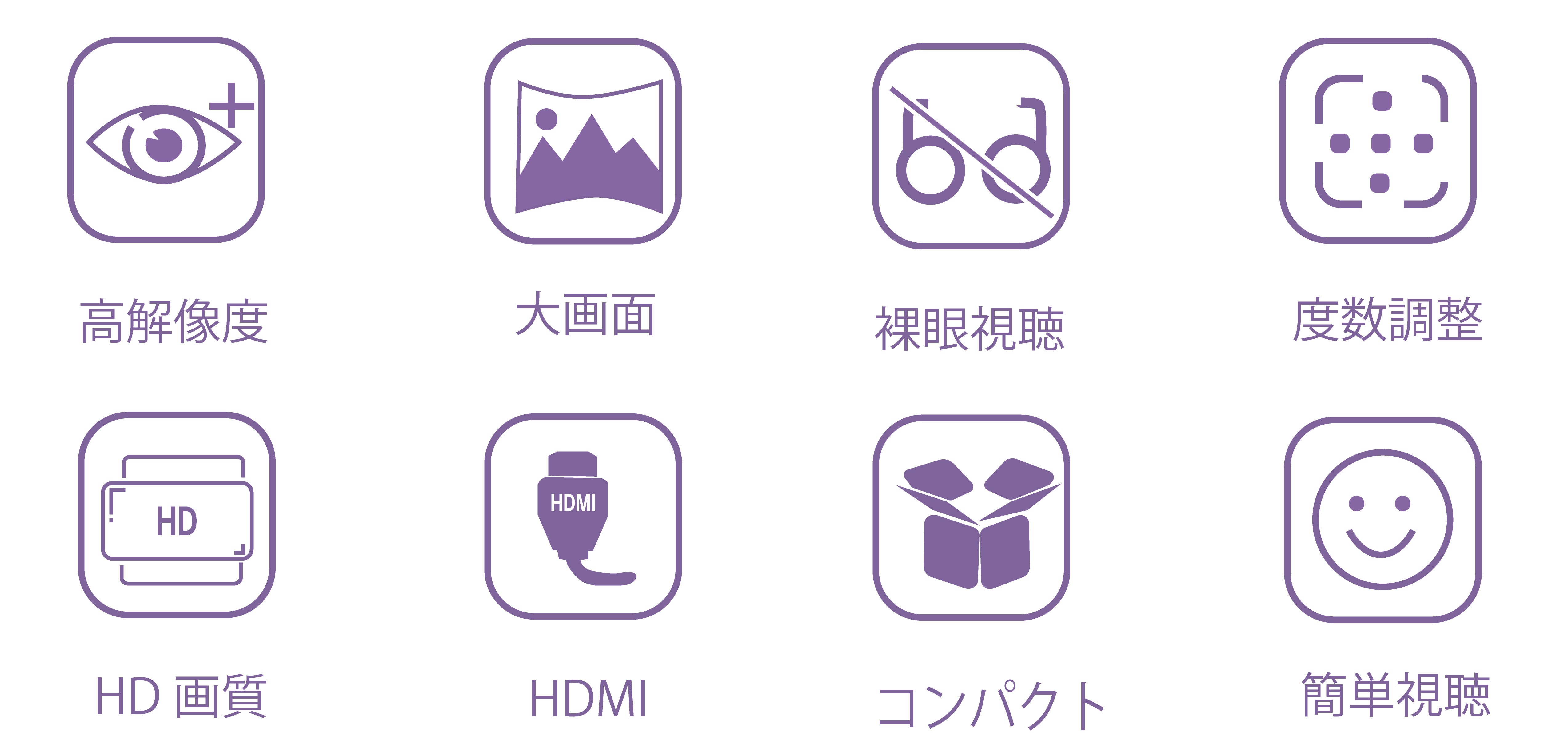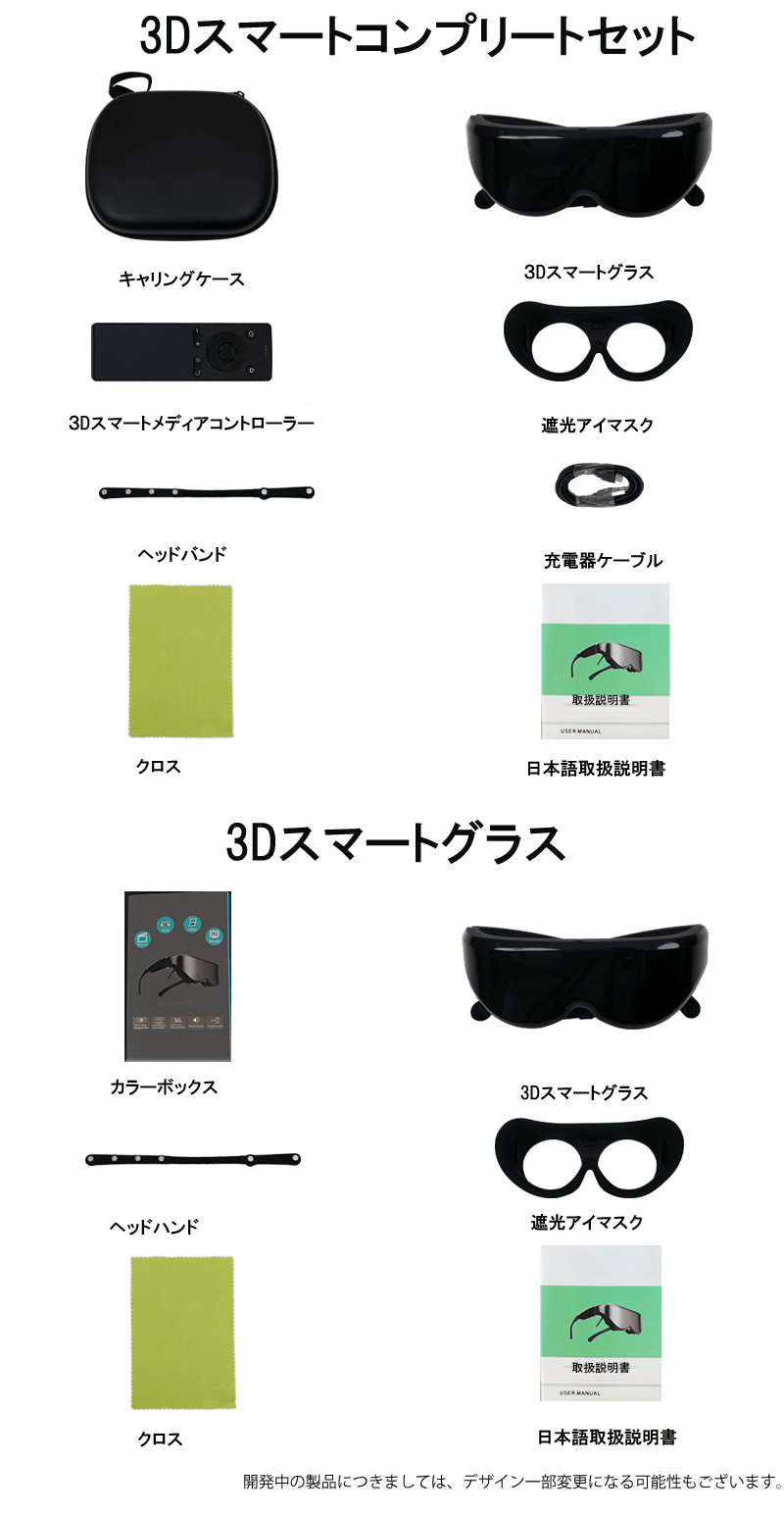 また、グラス単体ご購入の場合は、スクリーンのサイズが調整できないため、ご視聴の動画により画面の四隅が多少欠ける可能性もございます。
