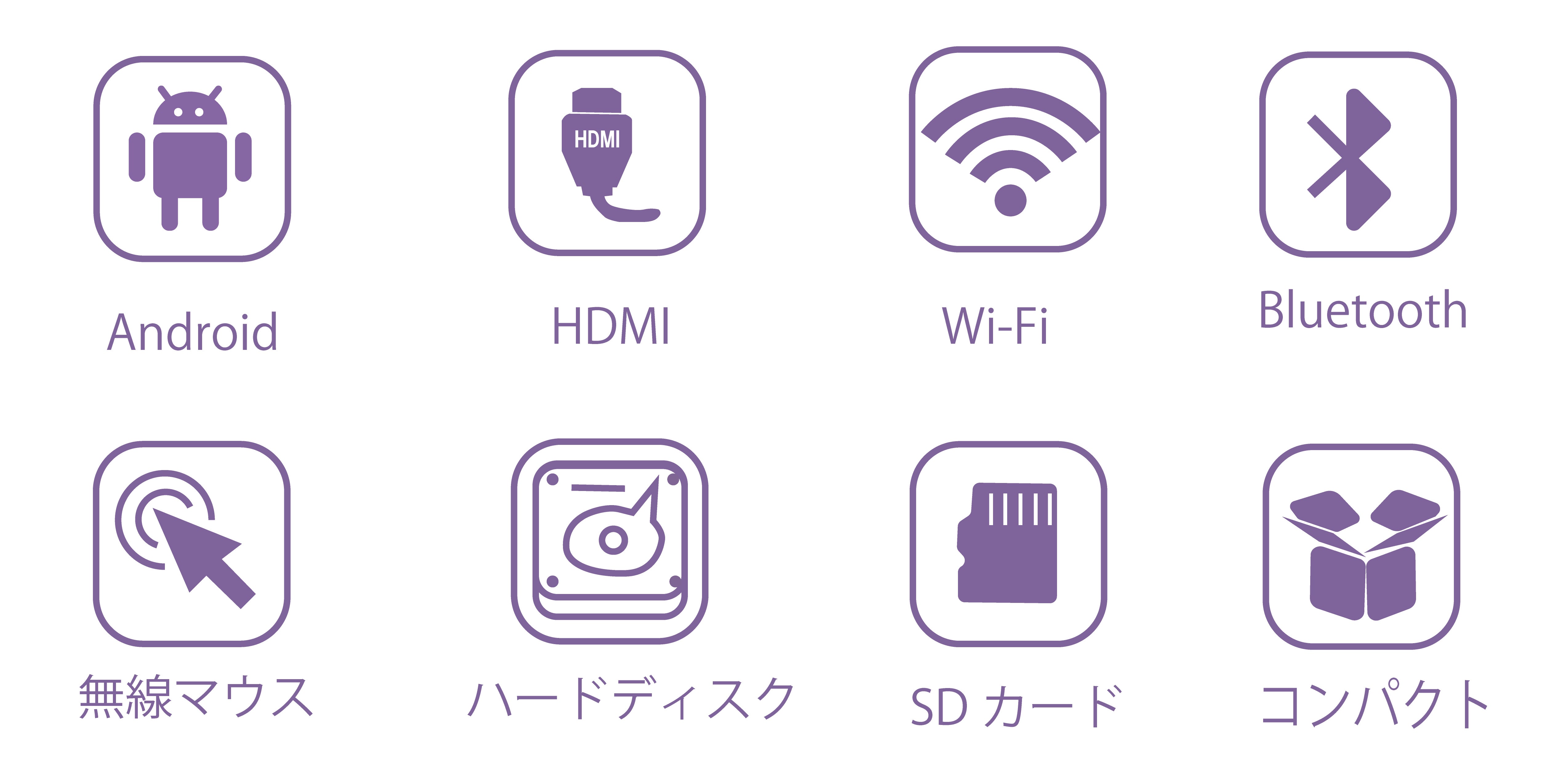 メディアコントローラをTV・モニター等と接続して、スマートテレビようになります。スマホやタブレット等をミラーリングも可能です。