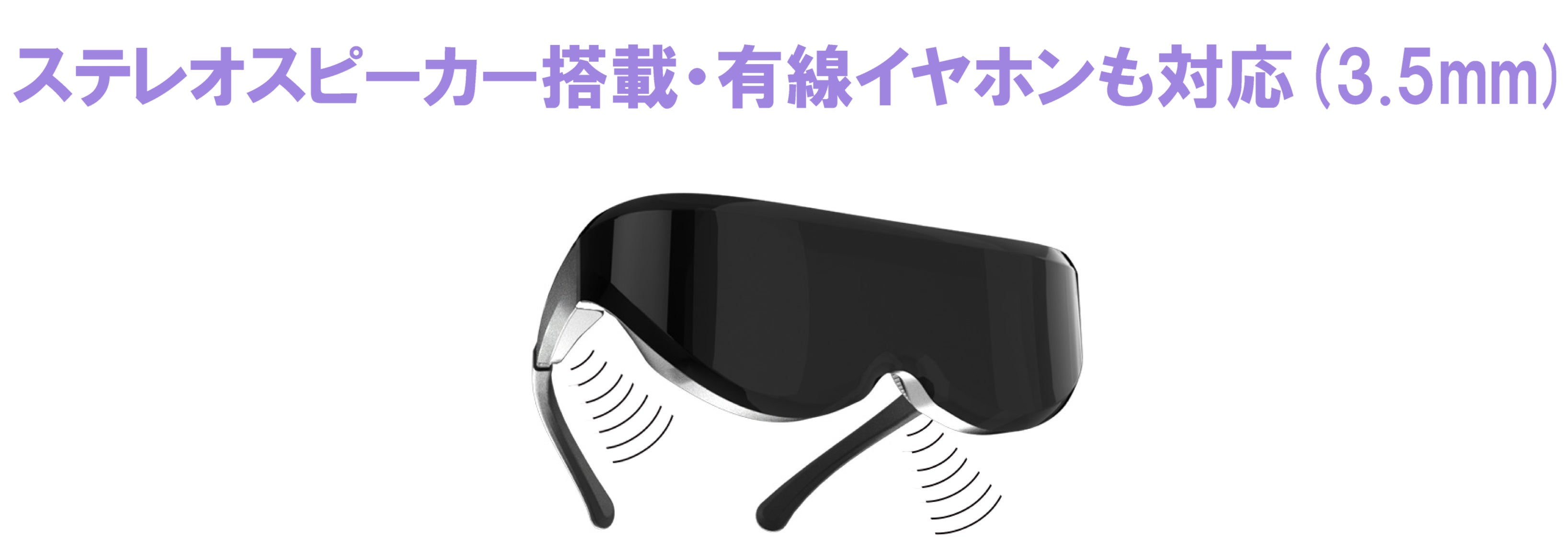 グラス固定用のヘッドバンド付属しており、有線イヤホンはもちろん、高品質スピーカー搭載しており、立体音響の迫力あるサウンド。