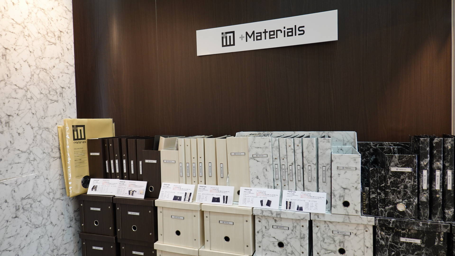 いずれも内装材で仕上げているので、ステーショナリー・雑貨で重要なポイントであるインテリアとマッチし、色調・質感ともに上品な空間を演出できます。