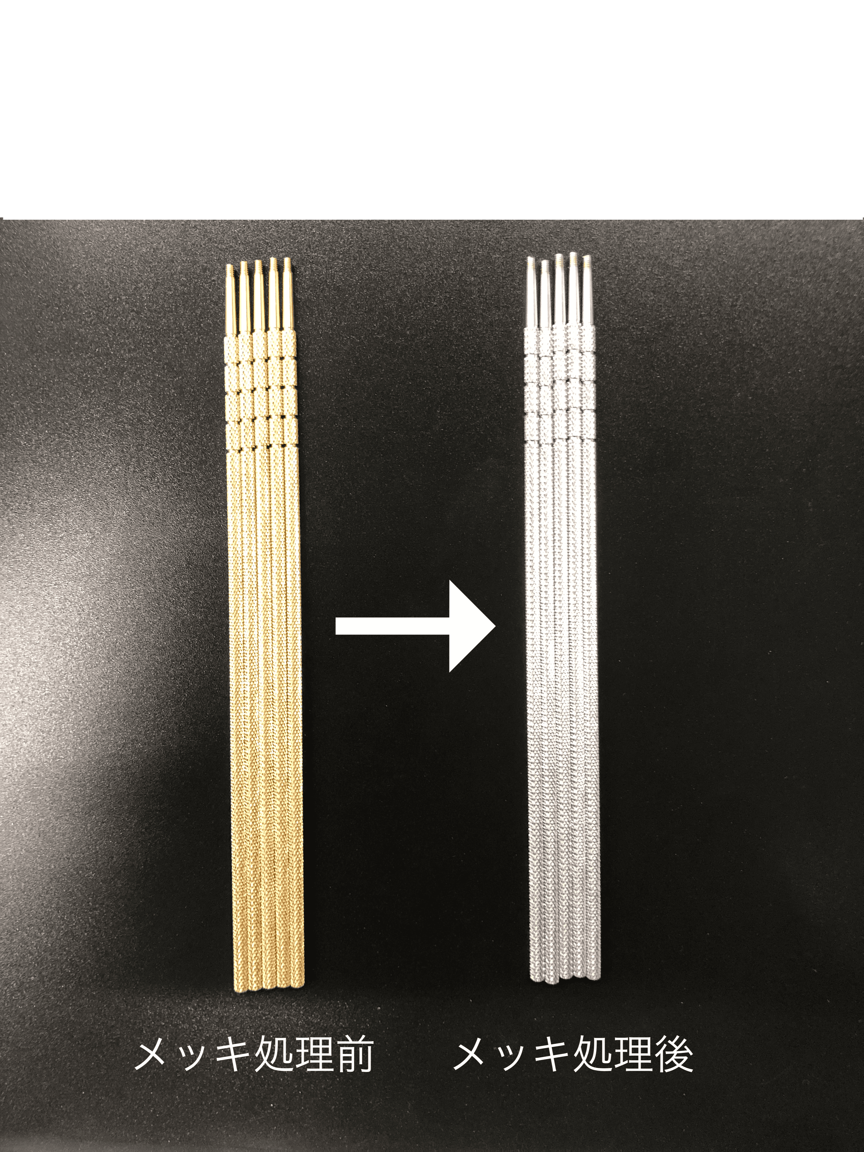 これは医療機器製造でよく使われる技術で、金属にこの加工を施す事で手に持った際に滑りにくくなります。
