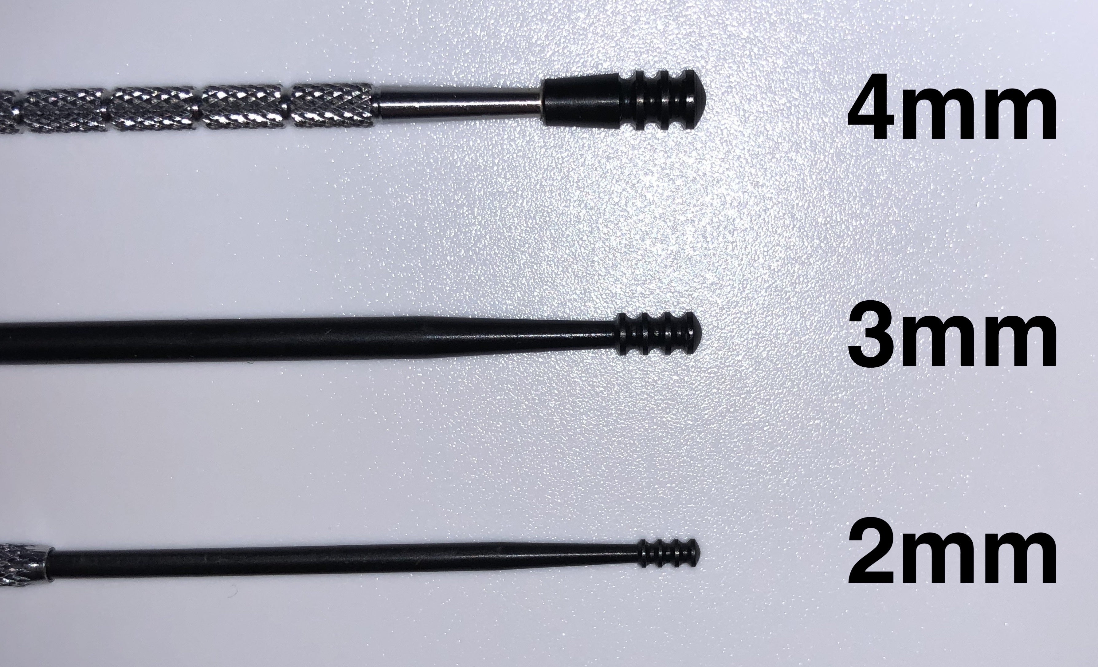 先端部の太さは4mm3mm、2mmの3種類。用途に応じて使い分けることができます。
