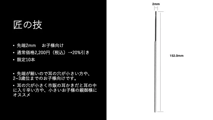 3.医療器具屋さんが作った耳かき 匠の技(先端2mm)