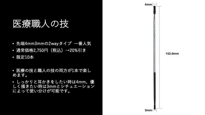4.医療器具屋さんが作った耳かき 医療職人の技(先端4mm &3mmの2wayタイプ)